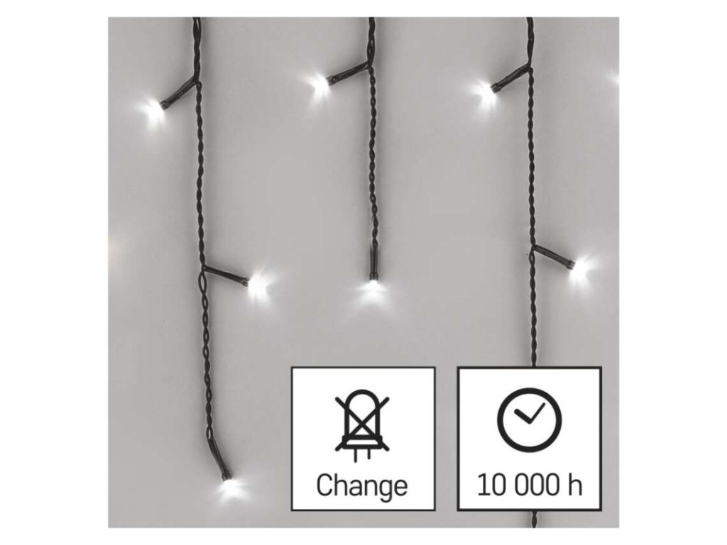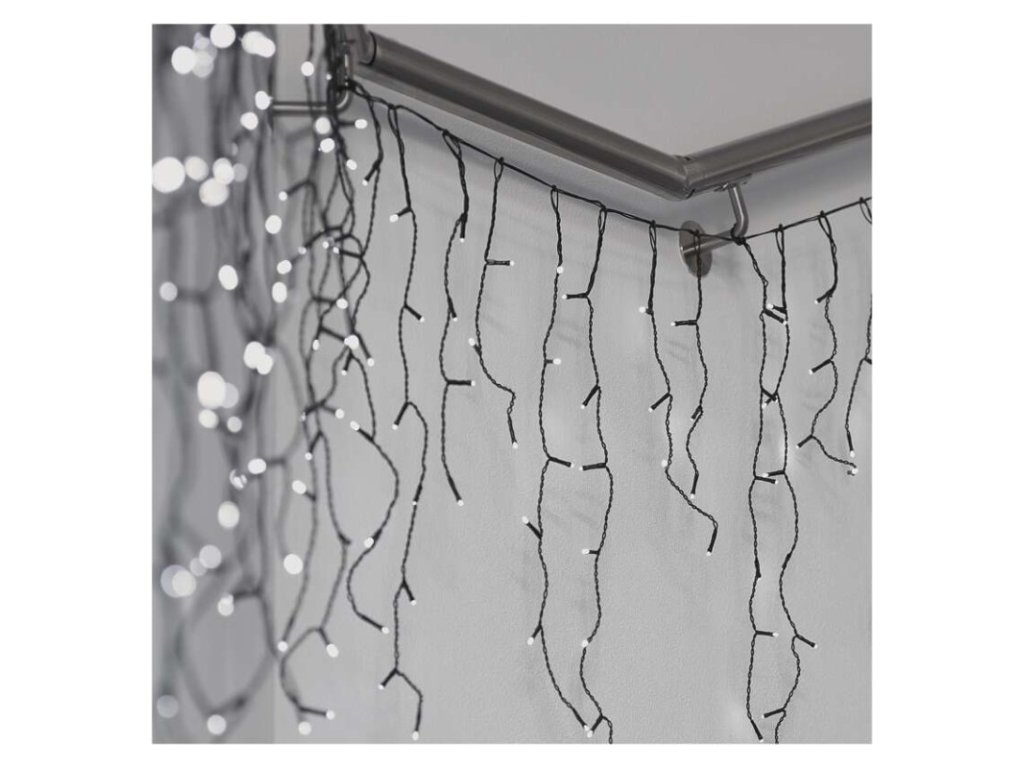 LED vánoční rampouchy, 10 m, venkovní i vnitřní, studená bílá, programy