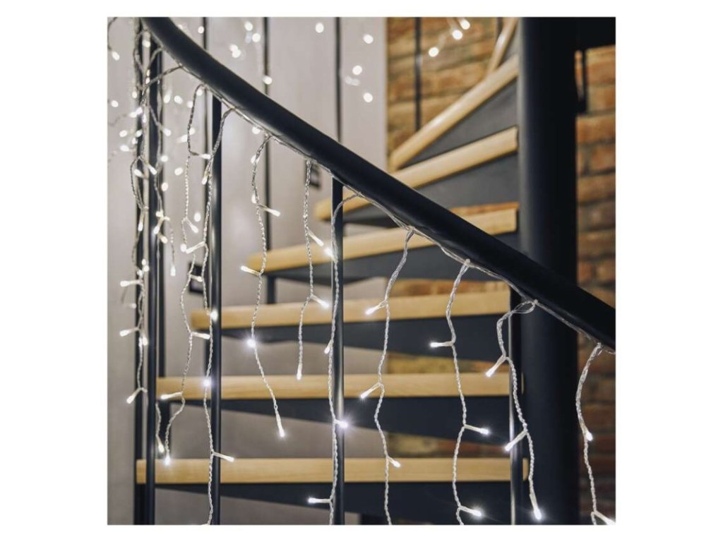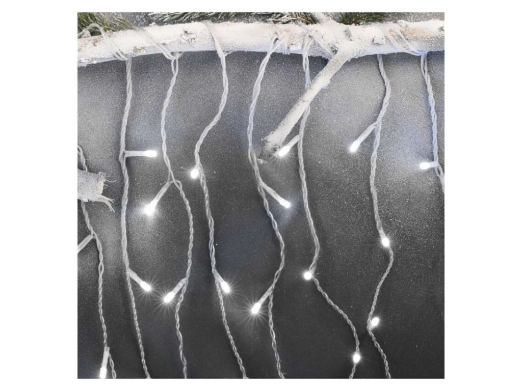 LED vánoční rampouchy, 5 m, venkovní i vnitřní, studená bílá, ovladač, programy, časovač