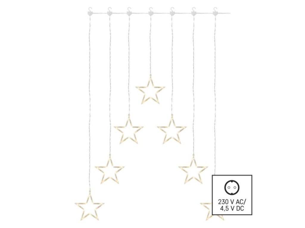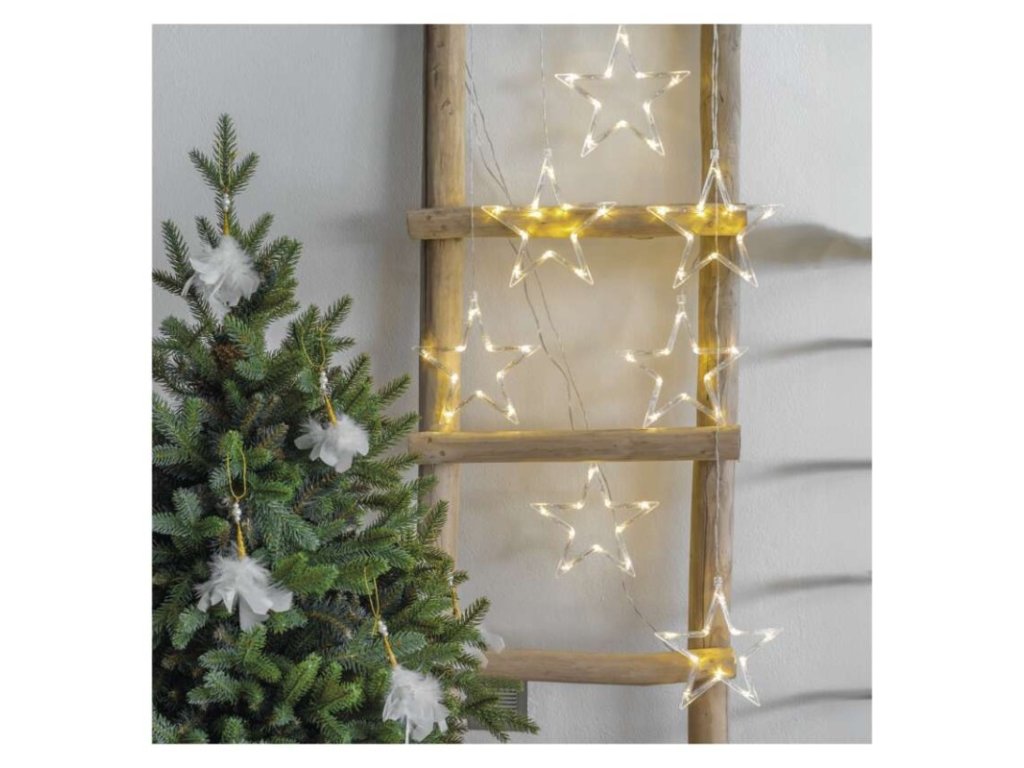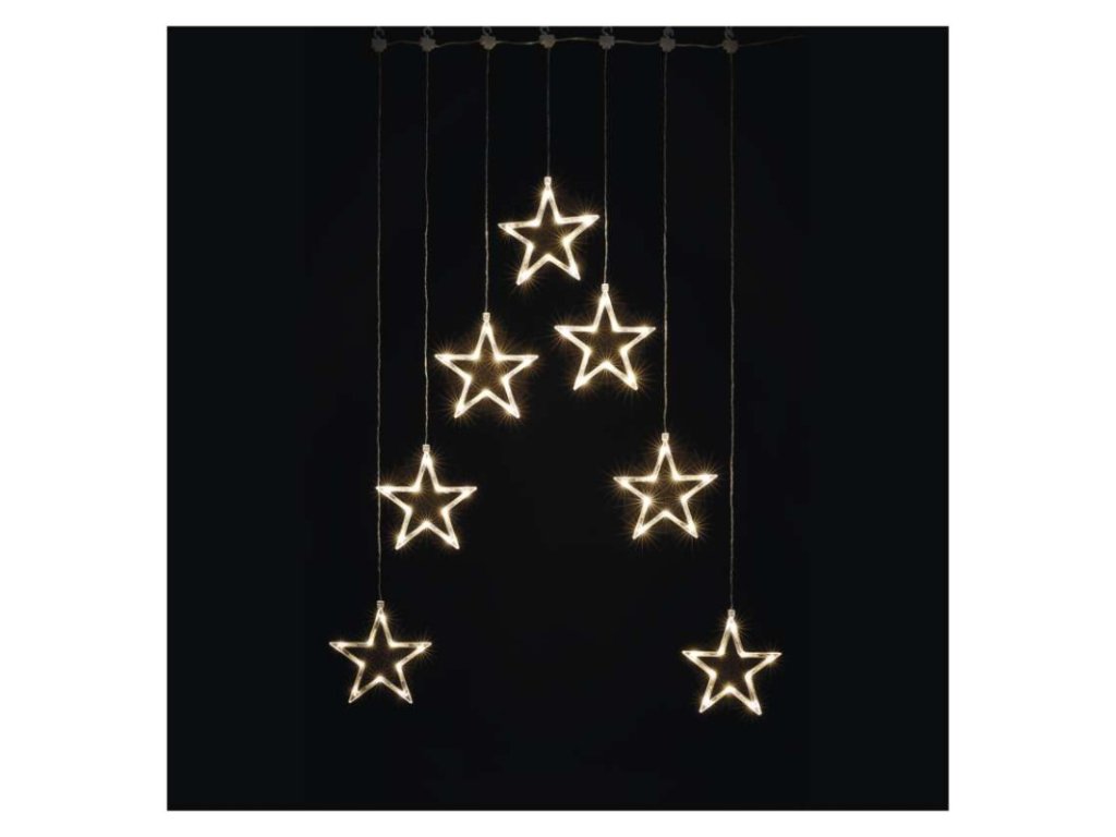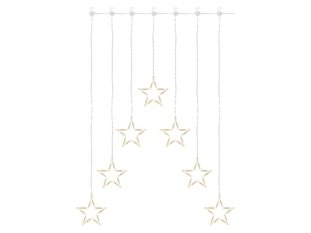 LED vánoční závěs – 7 hvězd, 67x125 cm, vnitřní, teplá bílá