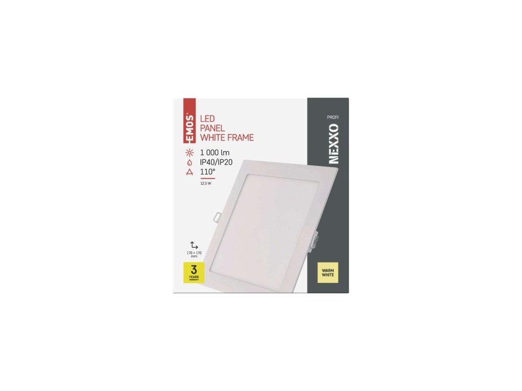 barva světla: teplá bílá|barva těla: bílá|dálkový ovladač: ne|do chodby a na schodiště: ano|do dílny a garáže: ne|do kanceláře: ano|do koupelny: ne|do kuchyně: ano|do obýváku, ložnice a dětského pokoje: ano|dosah senzoru: nemá senzor|flicker-free: ano|frekvence: 50/60 Hz|index podání barev (CRI): Ra > 82|kategorie: PROFI|krytí: IP40/IP20|materiál difuzoru: plast (PS)|materiál LGP: PMMA|materiál těla: hliník|montážní otvor: 155 × 155 mm|možnost stmívání: ne|náhrada za žárovku: 70 W|napětí: 220–240 V|na zahradu a balkon: ne|pohybový senzor: ne|příkon: 12,5 W|prodejní obal: 1 ks, krabice|proud: 109 mA|řada: NEXXO|rozměr: 170 × 170 × 21 mm|světelná účinnost: 83 lm/W|světelný tok: 1 000 lm|teplota chromatičnosti: 3 000 K|tvar: čtverec|typ difuzoru: mléčný|typ svítidla: klasické svítidlo|účiník: > 0,5|UGR<: neuvádí se|úhel vyzařování: 110°|umístění: stropní|výstupní proud ze zdroje: 300 mA|záruční doba: 3 roky|zdroj světla: LED|životnost: 30 000 hodin|způsob montáže: vestavnéDoplňkové parametry