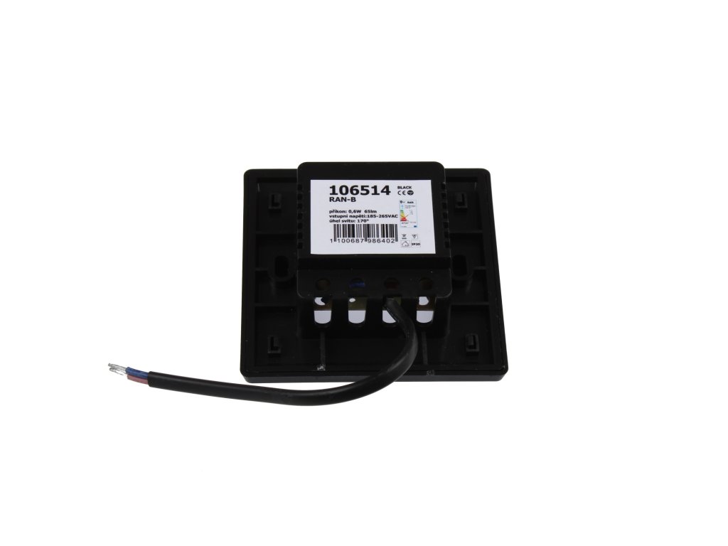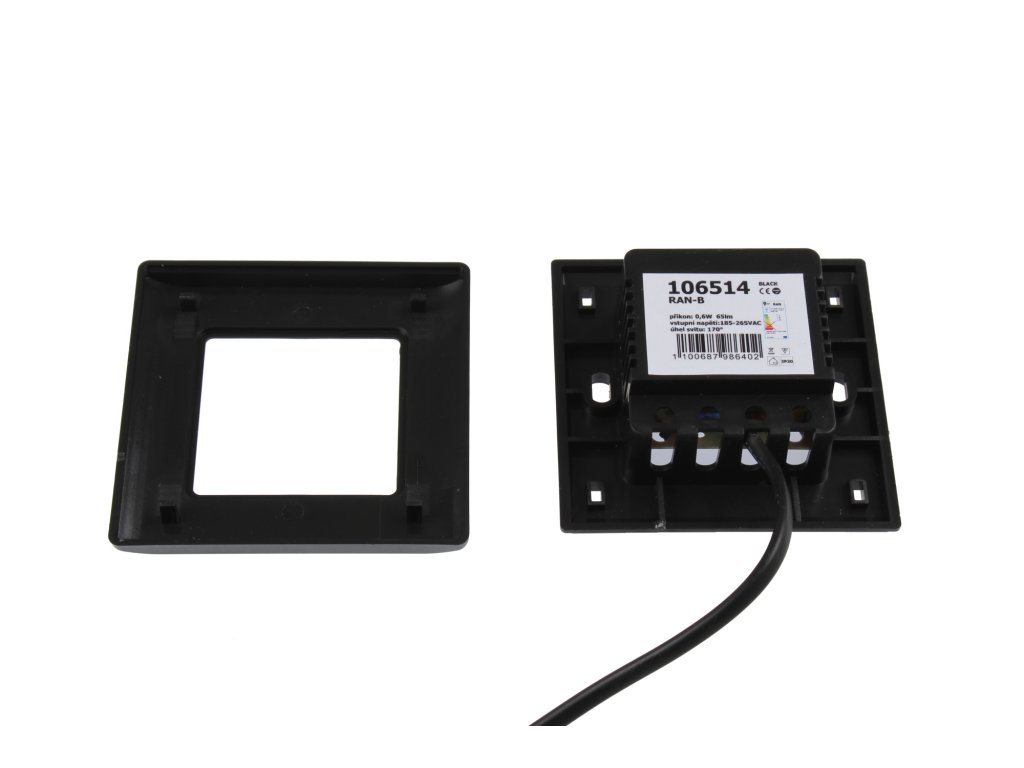 LED svítidlo vestavné na 230V užívané nejčastěji jako orientační osvětlení, nejčastěji jako osvětlení ke schodům nebo chodeb. Svítidlo je rozložitelné na 2 části. Spodní část lze namontovat a přišroubovat například do krabic KU 68(krabičku doporučujeme zabudovávat až se zakoupenými světly RAN), přední část se poté na zadní část nacvakne. Svítidlo obsahuje nevyměnitelný zdroj světla. Specifikace LED svítidla Barva svítidla Černá Barevná varianta Teplá bílá Denní bílá Studená bílá Teplota světla 3000K 4500K 6000K Světelný tok 60lm 65lm 70lm CRI 80 Vstupní napětí 185-265V AC Příkon 0,6W Provozní teplota -30°C až max. 60°C Životnost Až 50 000h Rozměry 86×86x34mm Krytí IP20 Materiál Plast Co je teplota světla a jak ji správně vybrat? To se dozvíte zde.Doplňkové parametry