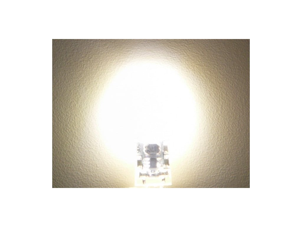 LED úsporná žárovka na 12-24V se paticí G4, která nahrazuje 25-30W halogen. LED žárovky nabízíme ve třech barevných variantách (studená bílá, denní bílá a teplá bílá). Nechte si poradit při výběru barvy světla. Při výměně za běžnou G4 halogenovou žárovku doporučujeme použít 12V stabilizovaný zdroj, který lze případně zakoupit i u nás. V případě použití původního halogenového zdroje může dojít k poškození LED žárovek. !!! Pozor, při manipulaci s touto žárovkou zacházejte opatrně, aby nedošlo k jejímu zlomení a tím k poškození!!! Specifikace LED žárovky Vstupní napětí 12-24V AC/DC Patice G4 Barevná varianta Teplá bílá Denní bílá Bílá Teplota 3000K 4500K 6000K Světelný tok 180lm 190lm 200lm CRI >80 Příkon 3W čip (1,5W reálný příkon) Úhel svitu >180° Náhrada za >25W halogen LED čip COB Epistar Provozní teplota -15°C až max. 60°C Životnost až 40 000 hodin Rozměry 10×29 mm (p/v) Stmívatelná ANO* *s naším spínaným zdrojem a ovladačem Co je teplota světla a jak ji správně vybrat? To se dozvíte zde.Doplňkové parametry