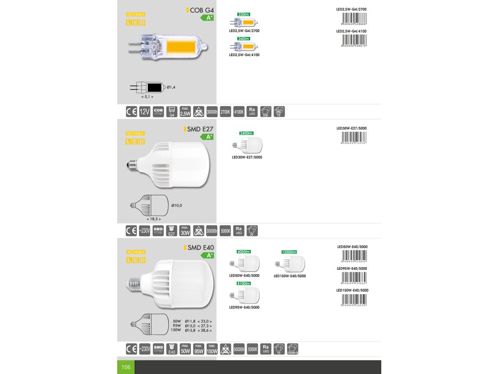 LED žárovky Ecolite přináší nejúspornější svícení do Vaší domácnosti či kanceláře. Mají okamžitý náběh a zajistí stejný výkon jako klasické žárovky při minimální spotřebě. Obrovskou výhodou je jejich životnost, která dosahuje 20.000 - 50.000 hodin. V sortimentu nabízíme modely s výkonem od 2,5W do 95W a patice různých druhů.Doplňkové parametry