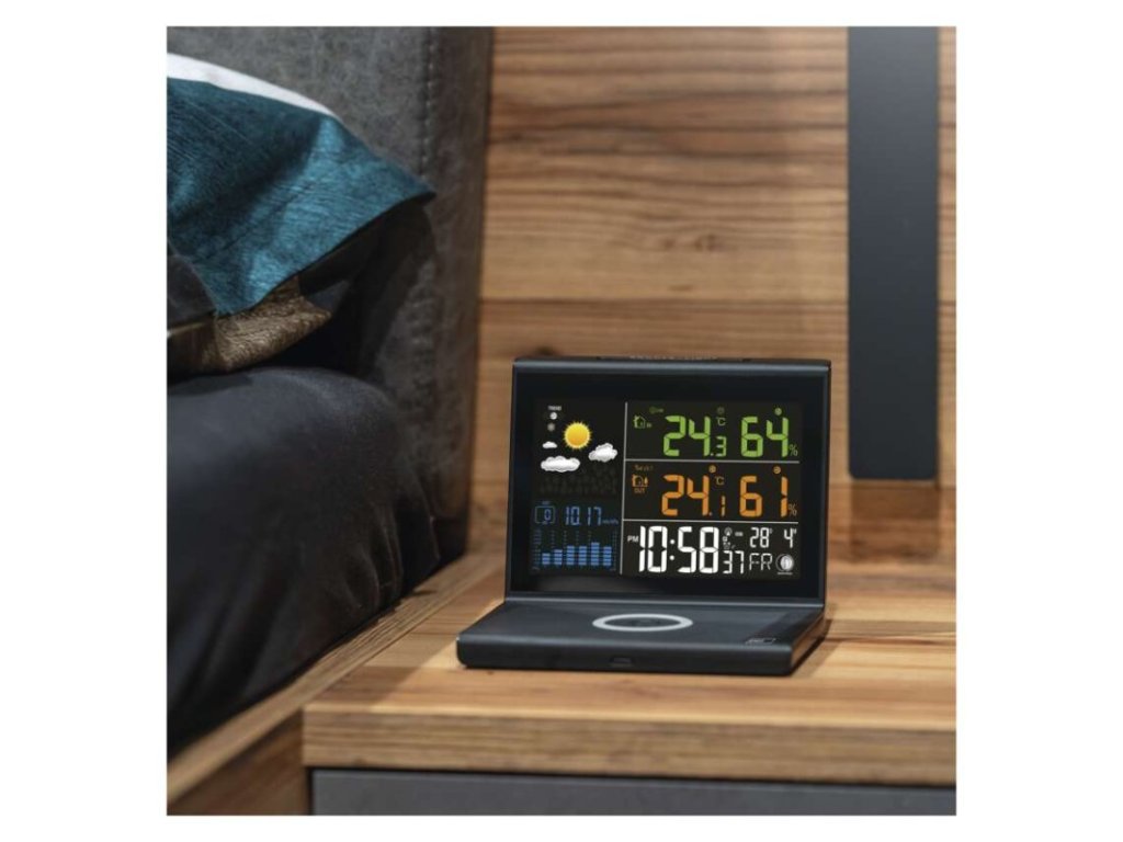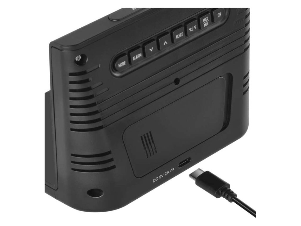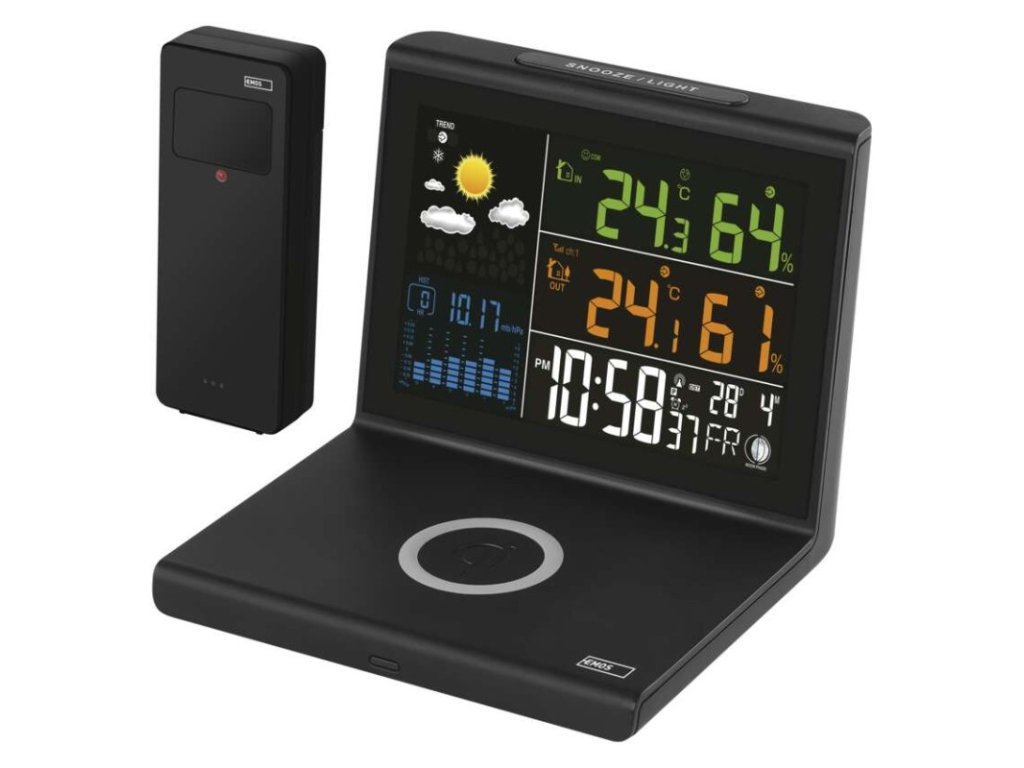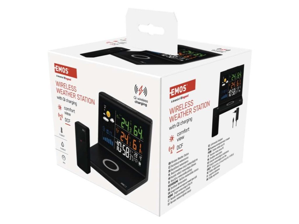 12/24 formát času: ano|anemometr: ne|barevný displej (black mask) podsvícený: ano|barometr: ano|budík: ano|časová pásma: ano|datum: ano|dosah čidla: až 100 m|drátová sonda k čidlu: ne|elektronické plošné podsvícení: ano|fáze měsíce: ano|hodiny: řízené DCF signálem|kalendář: ano|korekce nadmořské výšky: ne|LED podsvícení displeje: ano|min. a max. teplota: ano|možné další čidlo: až 3 čidla (E00387, E05018)|možnost nastavení jednotky teploty: °C/°F|možnost pověšení na zeď: ne|napájení čidla: 2× 1,5 V AAA (nejsou součástí balení)|napájení stanice: 2× 1,5 V AA (nejsou součástí balení)|opakované buzení: ano|předpověď počasí: ano|přenosová frekvence: 433 MHz|prodejní obal: 1 ks, krabička|produkt: meteostanice|projekce: ne|provedení: bezdrátové|rozměr čidla: 40 × 26 × 104 mm|rozměr hlavní jednotky: 133 × 125 × 110 mm|síťový adaptér: ano, USB-C 9 V DC/2 000 mA, 1,5 m (součástí balení)|srážkoměr: ne|teplotní výstraha: ano|trend teploty: ano|trend tlaku: ano|trvalé podsvícení: ano|velikost displeje: 110 × 73 mm|venkovní teplota: -50 °C až +70 °C, rozlišení 0,1 °C|venkovní vlhkost: 20 % až 95 % RV, rozlišení 1 %|vnitřní teplota: -2 °C až +50 °C, rozlišení 0,1 °C|vnitřní vlhkost: 20 % až 95 % RV, rozlišení 1 %Doplňkové parametry