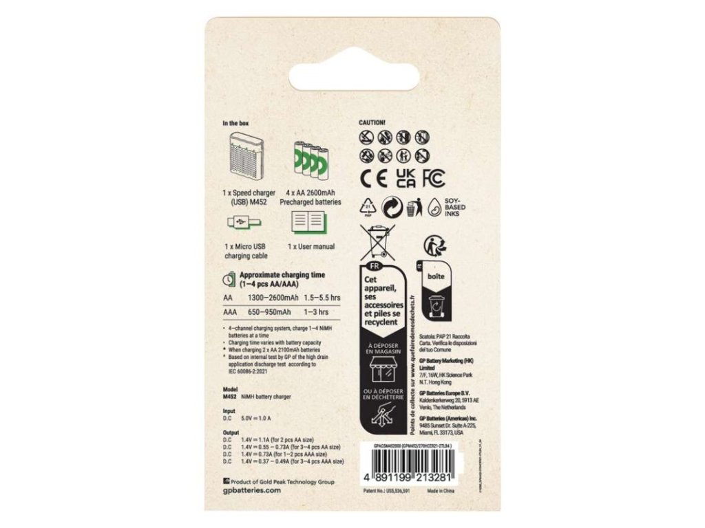 Nabíječka baterií GP Speed M452 + 4× AA ReCyko 2600