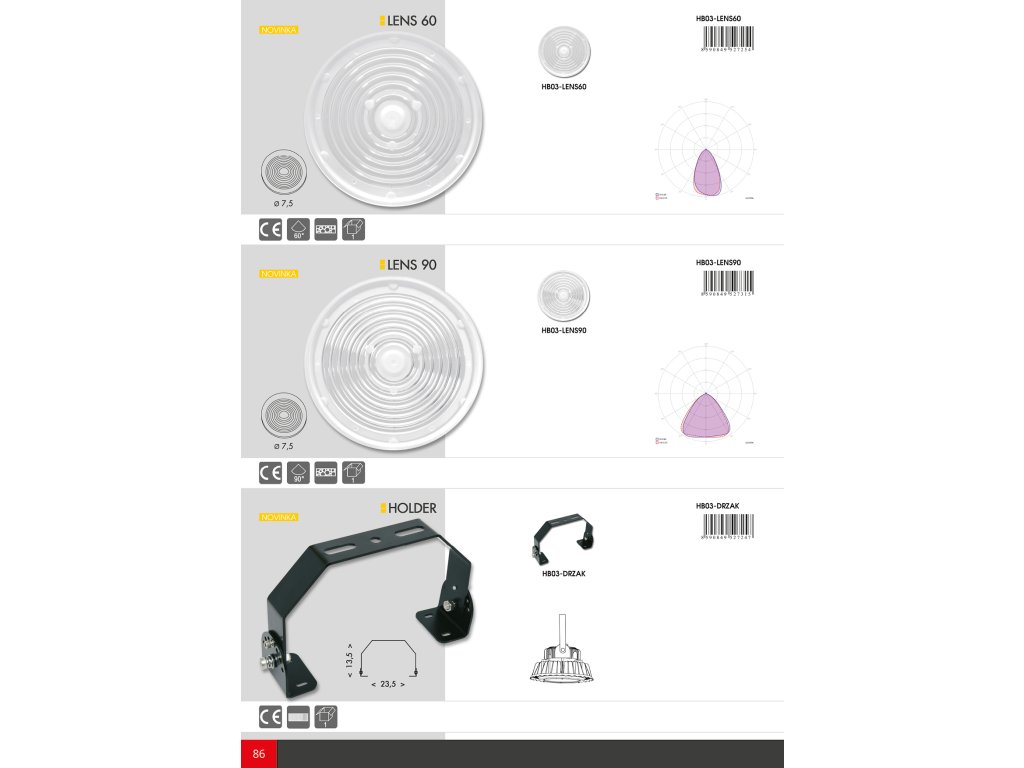 HB-LENS je plastová vyměnitelná čočka k high bay svítidlům INDUSTRY s úzkým rozptylem 90°, která nahrazuje původní skleněný kryt. Před výměnou doporučujeme důkladně pročíst uživatelský manuál nebo shlédnout naše instruktážní video.Doplňkové parametry