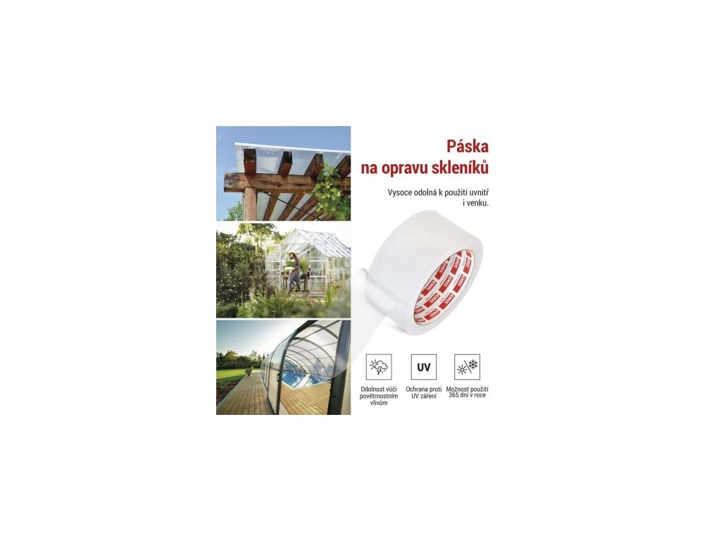 barva: transparentní|délka návinu: 25 m|doporučená skladovací teplota: 10–45 °C|elektrická pevnost minimálně: neuvádí se|elektrická pevnost po vlhku minimálně: neuvádí se|integrovaná textilní síťka: ne|materiál lepidla: akryl|odolné UV: ano|pevnost v tahu: neuvádí se|potisk: bez potisku|předpokládané použití: opravy všech typů polykarbonátů, opravy skleněných tabulí|přilnavost k oceli minimálně: neuvádí se|přilnavost k podkladu: neuvádí se|prodejní obal: 1 ks, papírová krabice|prodloužení minimálně: není|rozměr: neuvádí se|rozsah instalačních teplot: -25–90 °C|samozhášivé: neuvádí se|šířka pásky: 50 mm|splňuje směrnici REACH: neuvádí se|splňuje směrnici ROHS: ano|tloušťka pásky: 0,15 mm|typ pásky: podklad z PE|vodotěsný spoj: neuvádí se|vyhovuje normě: neuvádí se|vytváří tlakotěsný spoj: ne|zkouška plamenem: neuvádí seDoplňkové parametry