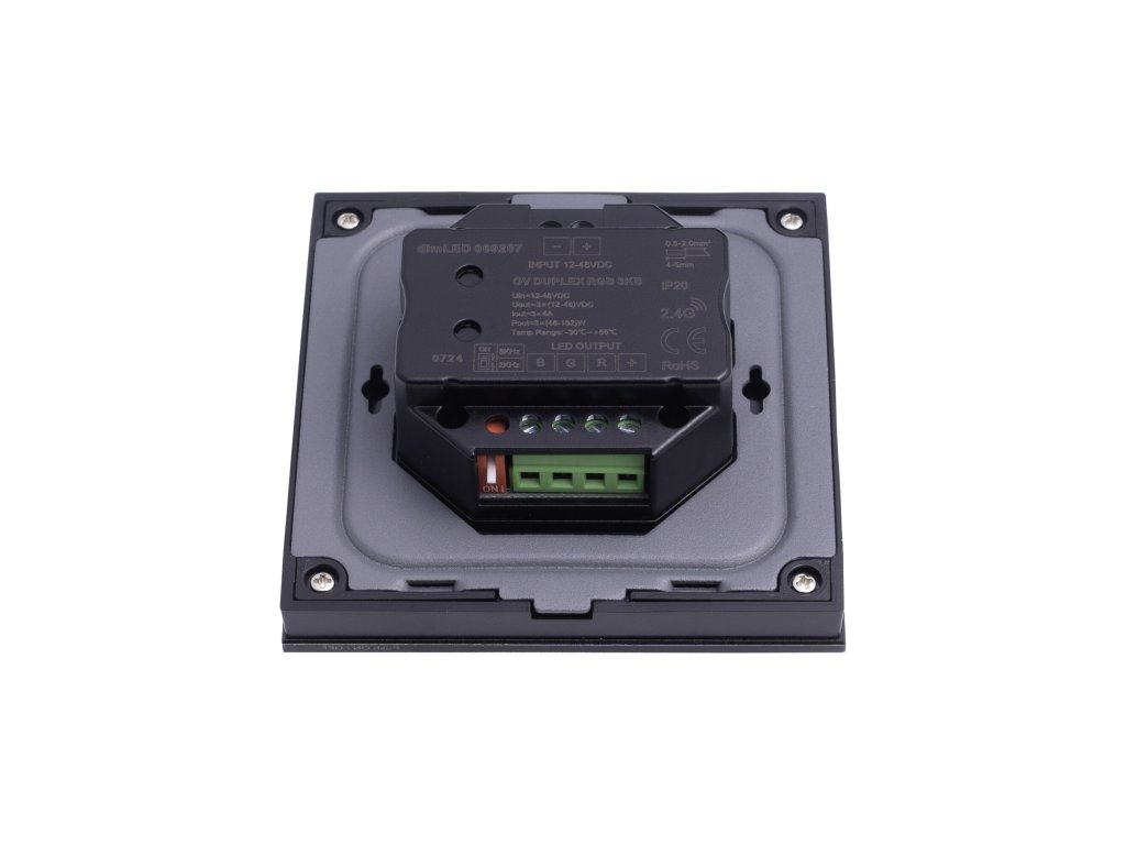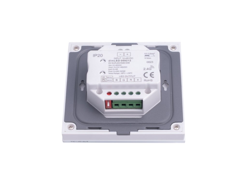 Nástěnný LED ovladač OV DUPLEX RGB 3K kombinuje vlastnosti přijímače a ovladače. S jedním ovladačem DUPLEX lze ovládat 1 okruh, který se může skládat i z několika přijímačů na více místech. Zároveň lze přímo na výstup stmívače DUPLEX připojit LED osvětlení a ovladač DUPLEX použít i jako přijímač. Ovladačem DUPLEX lze tedy ovládat i jiné řady přijímačů dimLED a zároveň k němu lze spárovat jiné modely ovladačů dimLED. Vlastnosti a výhody systému dimLED: Stmívání je stabilní a spolehlivé, dosah ovladače ≤ 30M. Stmívání v rozmezí 0-100%, stmívání měkké, bez blikání. Při zapnutí dojde k pozvolnému rozsvícení, při vypnutí dojde k pozvolnému setmění. Ovladač DUPLEX RGB 3K nástěnný: Ovládání probíhá na kolečku ovladače. Otáčení kolečka dochází k nastavování intenzity světla. Zmáčknutím kolečka dojde k vypnutí/zapnutí osvětlení. Specifikace ovladače: Přenosová frekvence 2,4GHz Pracovní frekvence 2kHz Vstupní napětí 12-24VDC Proudové zatížení 3x4A (12V 144W, 24V 288W) = 4 výstupy ovládané společně Dosah 30m Počet zón 1 samostatná Počet přijímačů lze spárovat neomezeně přijímačů Počet ovladačů až 10 externích ovladačů Rozměry 86 x 86 x 50 mm (lze namontovat do standartní EU krabice) Paměť posledního nastavení po odpojení napájení: ANO Stupeň krytí: IP20Doplňkové parametry