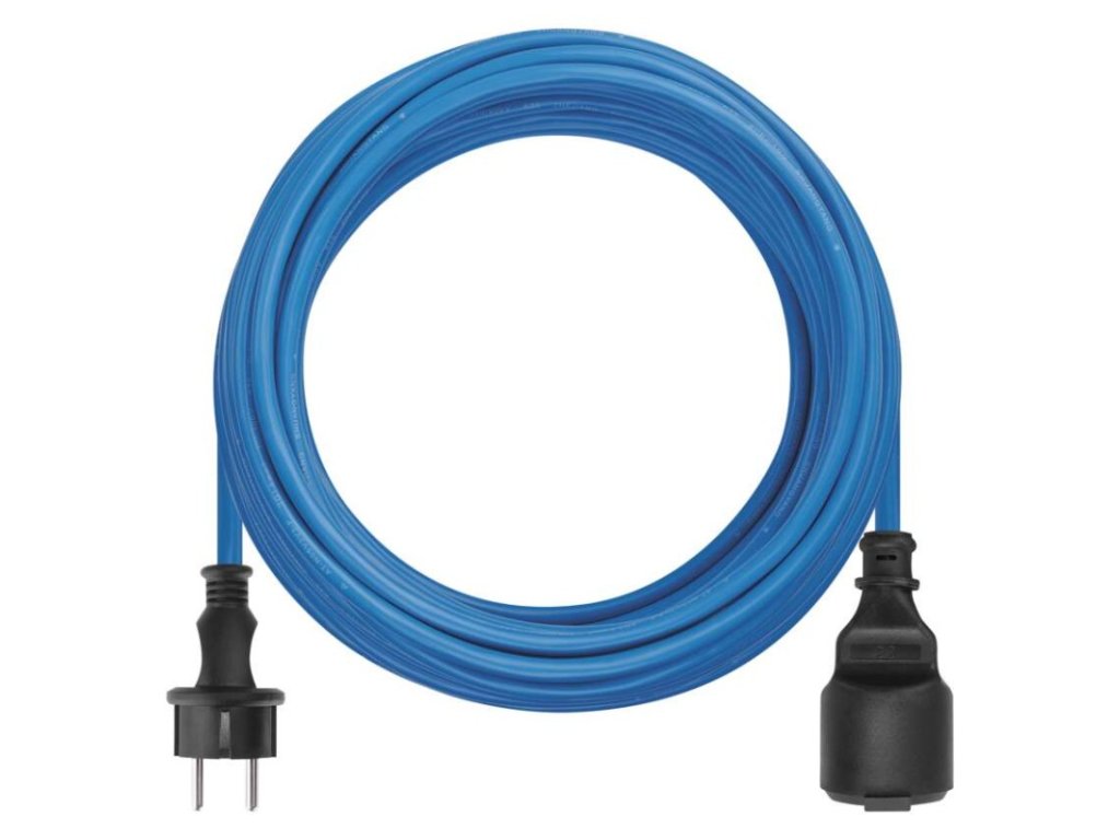 Počasí odolný prodlužovací kabel 20 m / 1 zásuvka / modrý / PVC / 230 V / 1,5 mm2