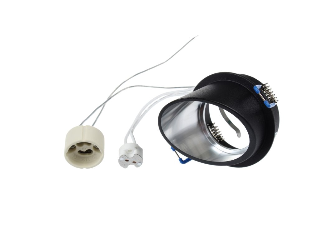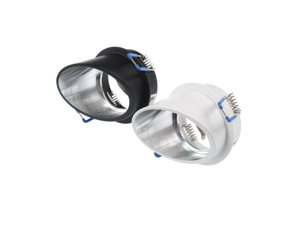 Podhledový výklopný rámeček pro LED žárovky a halogenové žárovky typu MR16 a GU10. Barva: Bílá/stříbrná nebo černá/stříbrná Materiál: Hliník Stupeň krytí: IP20 Obsah balení: Podhledový rámeček, patice GU5,3 (MR16) a GU10. Rozměry: viz. obrázek Součástí podhledového rámečku není žárovka.Doplňkové parametry