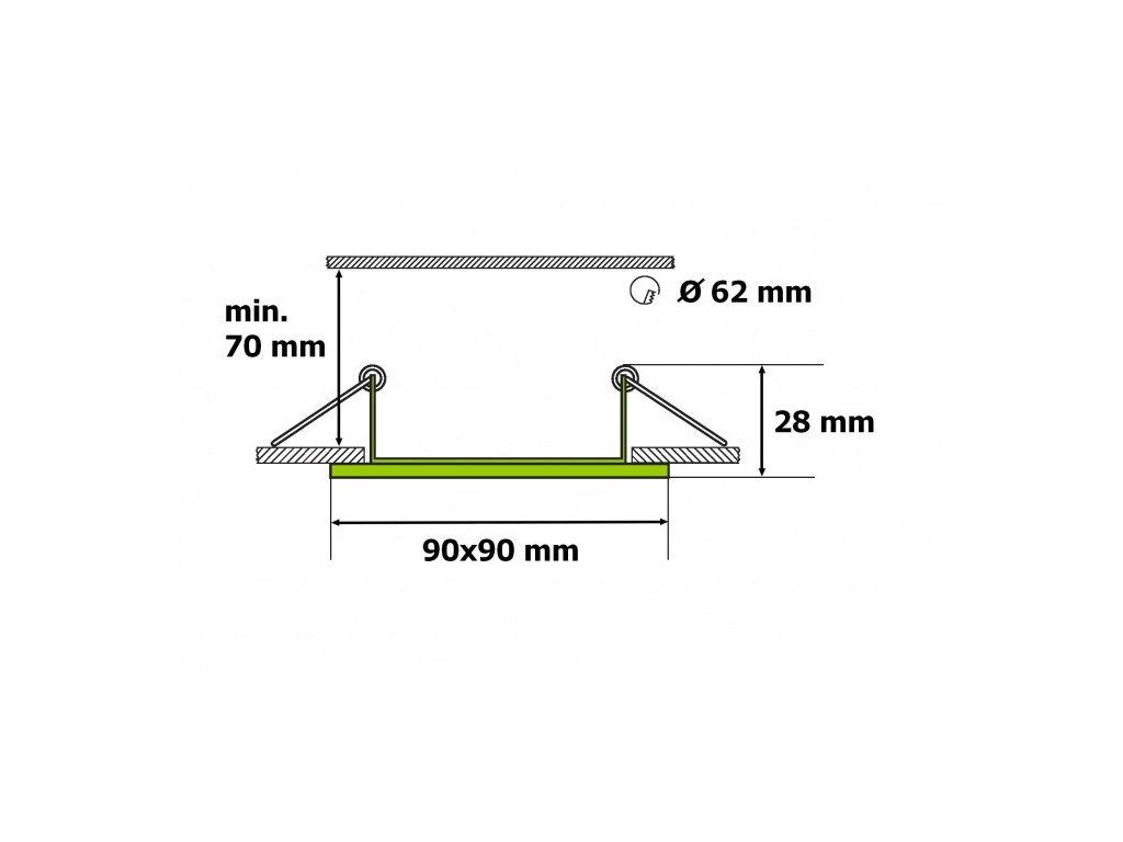 Podhledový nevýklopný rámeček pro LED žárovky a halogenové žárovky typu MR16 a GU10. Barva: zrcadlový efekt, materiál sklo Stupeň krytí: IP20 Obsah balení: rámeček a patice MR16. Rozměry: viz. obrázek Pro žárovky na 230V s paticí GU10 je nutno patice doobjednat zde. Součástí podhledového rámečku není žárovka.Doplňkové parametry