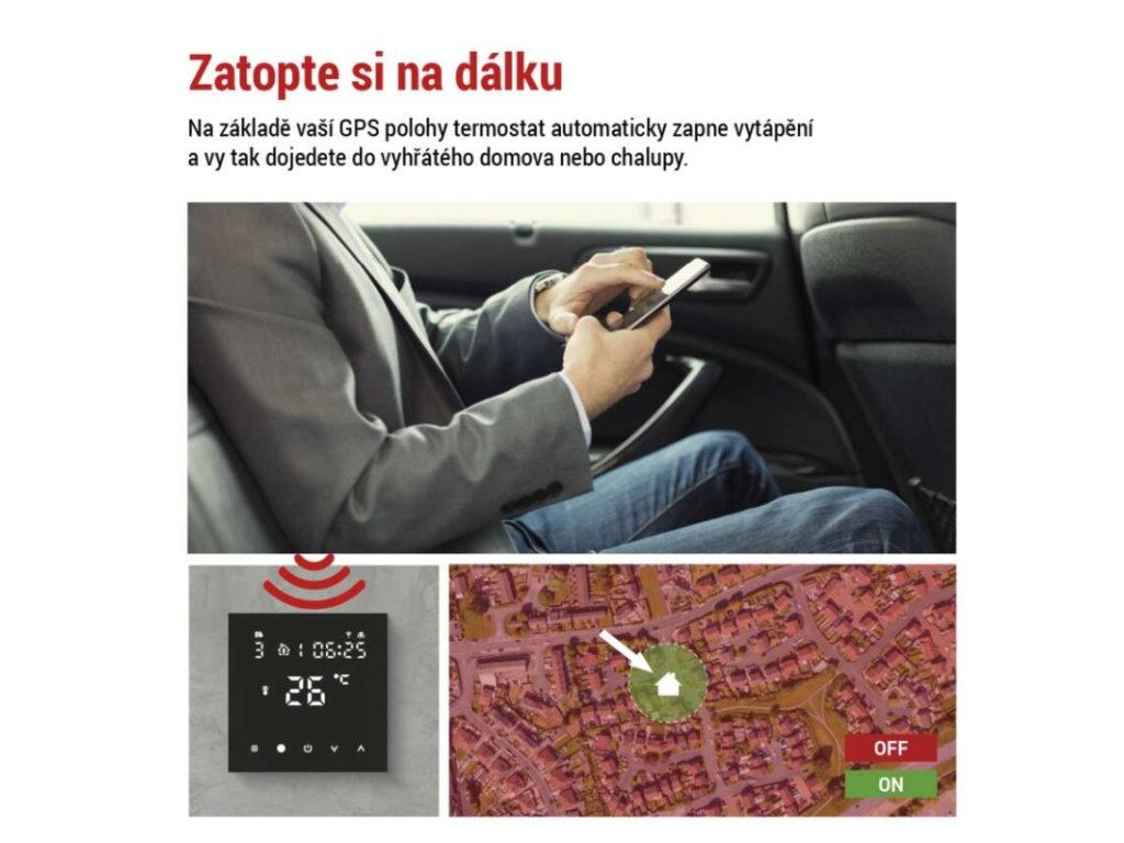 | Typ ovládání: | programovatelný elektronický pokojový termostat, možnost ovládaní přes mobil (iOS, Android) |