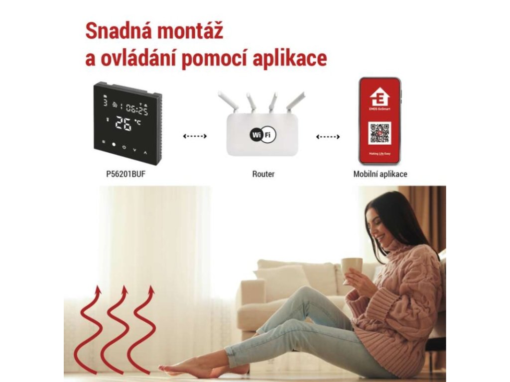Podlahový programovatelný drátový WiFi GoSmart termostat P56201BUF