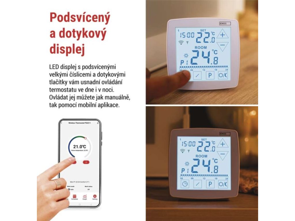 Pokojový programovatelný bezdrátový WiFi GoSmart termostat P56S11