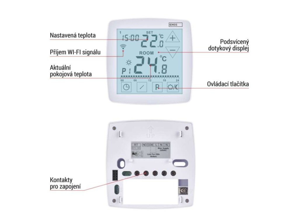 | Typ nastavení teploty: | komfortní a úsporná teplota |