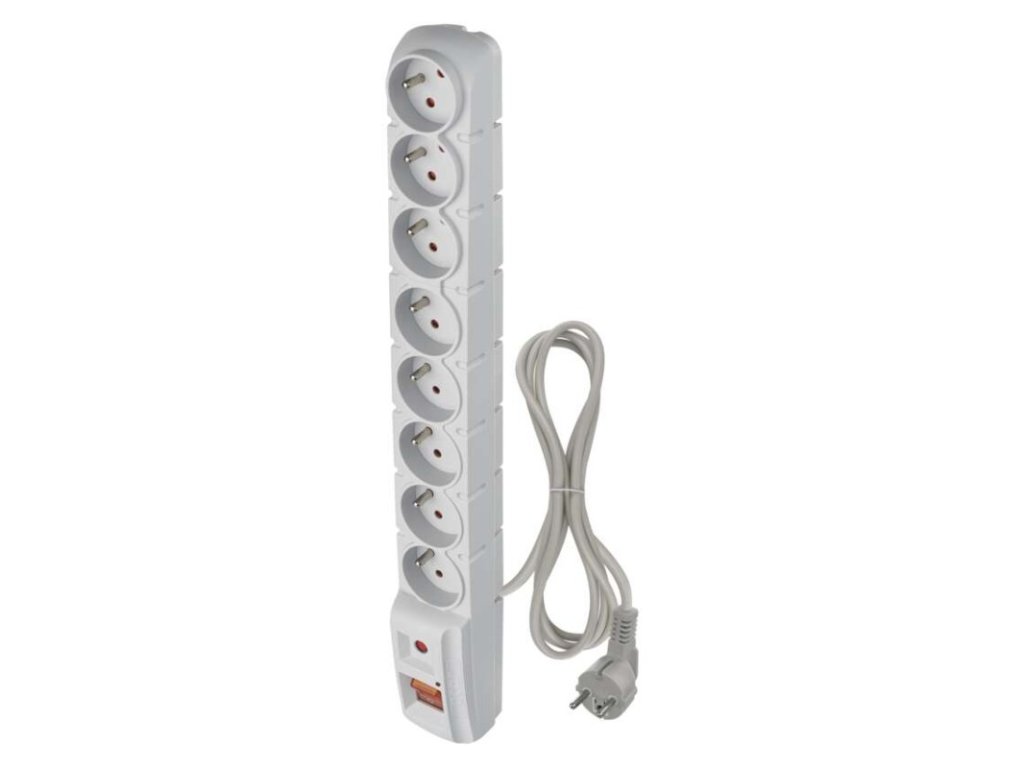 absorpce energie: 150 J|anténní (koaxiální ochrana): ne|barva: šedá|délka: 1,5 m|dětské clonky: ano|doba odezvy: <25 ns|EMI/RFI filtr: ne|garance: 2 000 €|indikátor přepětí: ano|indikátor zapojení: ne|jištení: pojistka s čas. zpož. 10 A/250 V|jmenovité napětí: 250 V~, 50 Hz|max. proudová zátěž: 10 A max.|max. zátěž: 2 300 W|ochrana proti přetížení: ano|ochranná úroveň Up: 1,3 kV (L/N)|počet zásuvek: 8× 2P + PE|prodejní obal: 1 ks, krabice|rozměr: 445 × 54 × 55 mm|rozsah kmitočtu: neuvádí se|tel. / fax / DSL ochrana: ne|USB výstup: ne|útlum: neuvádí se|vodič: H05VV-F3G 1,0 mm²|zkušební vlna U0c: 4 kVDoplňkové parametry