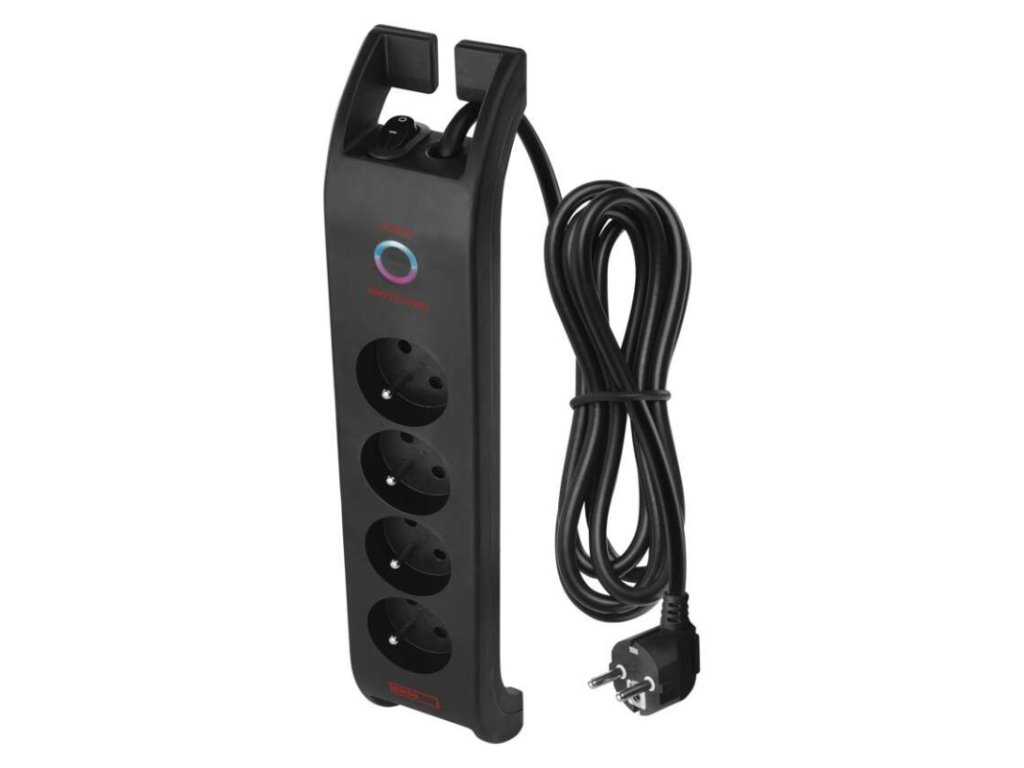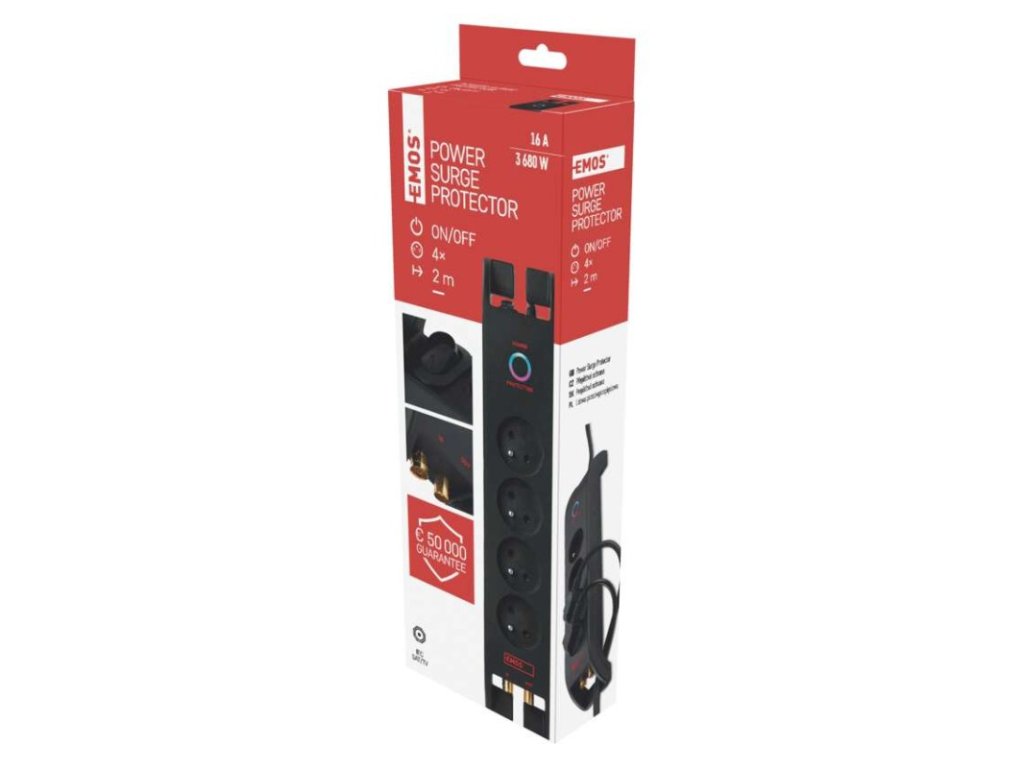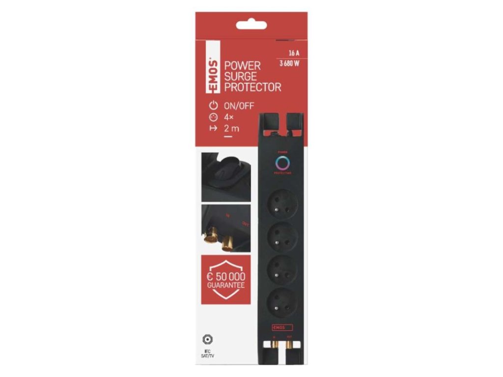 Přepěťová ochrana 1800J – 4 zásuvky, 2m, černá