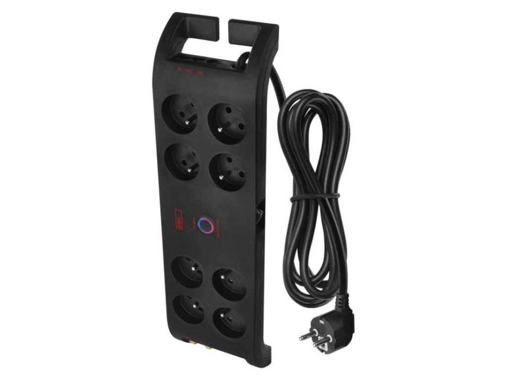 Přepěťová ochrana 1800J – 8 zásuvek, 3m, černá