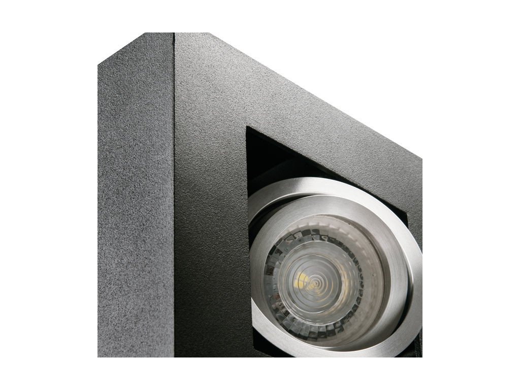Přisazené výklopné svítidlo STOBI 50-B černé na 1 žárovku s paticí GU10. Jako zdroj světla doporučujeme LED žárovky GU10. Žárovka není součástí balení. Specifikace LED svítidla Výklopné ANO Barva svítidla Černé Patice GU10 Vstupní napětí 230V AC Maximální příkon 50W Krytí IP20 Rozměry 140x140x85 mm Materiál Ocelový plechDoplňkové parametry