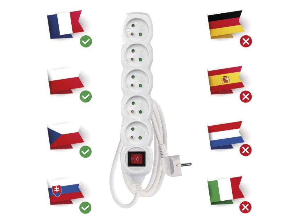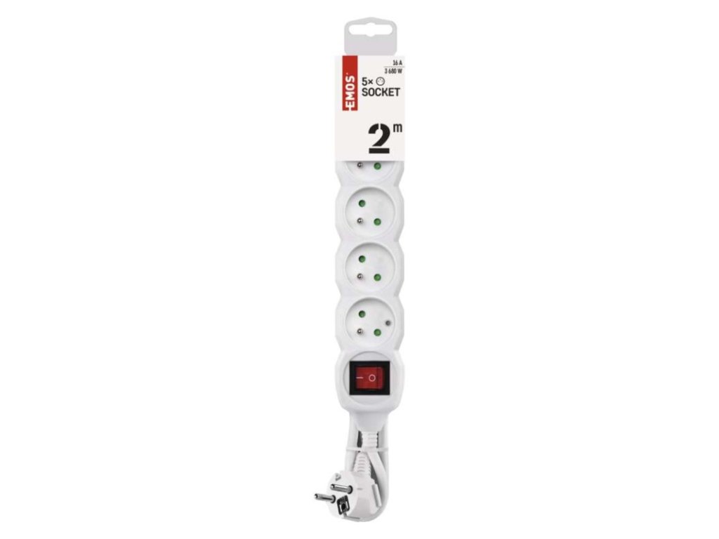 barva: bílá|délka: 2 m|dětské clonky: ano|krytí: IP20|materiál zásuvky a vidlice: plast|max. zátěž: 3 680 W|napětí: 250 V~|počet zásuvek: 5|prodejní obal: 1 ks, závěs|proud: 16 A max.|průřez vodiče: 1,0 mm²|typ izolace: PVC|USB výstup: ne|vodič: H05VV-F3G|vypínač: anoDoplňkové parametry