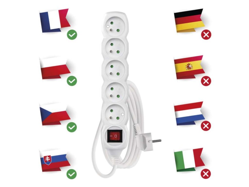barva: bílá|délka: 3 m|dětské clonky: ano|krytí: IP20|materiál zásuvky a vidlice: plast|max. zátěž: 3 680 W|napětí: 250 V~|počet zásuvek: 5|prodejní obal: 1 ks, závěs|proud: 16 A max.|průřez vodiče: 1,5 mm²|typ izolace: PVC|USB výstup: ne|vodič: H05VV-F3G|vypínač: anoDoplňkové parametry