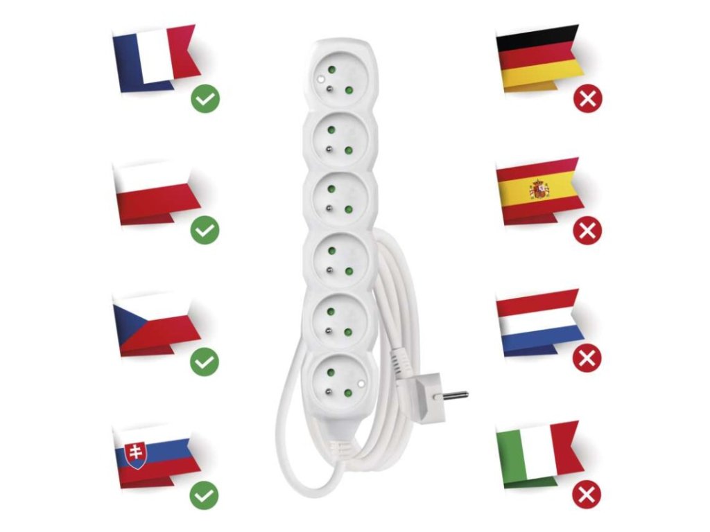 barva: bílá|délka: 3 m|dětské clonky: ano|krytí: IP20|materiál zásuvky a vidlice: plast|max. zátěž: 3 680 W|napětí: 250 V~|počet zásuvek: 6|prodejní obal: 1 ks, závěs|proud: 16 A max.|průřez vodiče: 1,5 mm²|typ izolace: PVC|USB výstup: ne|vodič: H05VV-F3G|vypínač: neDoplňkové parametry