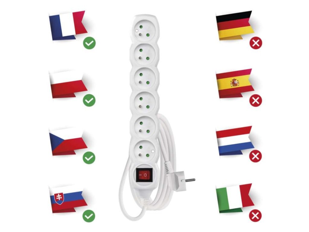 barva: bílá|délka: 3 m|dětské clonky: ano|krytí: IP20|materiál zásuvky a vidlice: plast|max. zátěž: 3 680 W|napětí: 250 V~|počet zásuvek: 6|prodejní obal: 1 ks, závěs|proud: 16 A max.|průřez vodiče: 1,5 mm²|typ izolace: PVC|USB výstup: ne|vodič: H05VV-F3G|vypínač: anoDoplňkové parametry