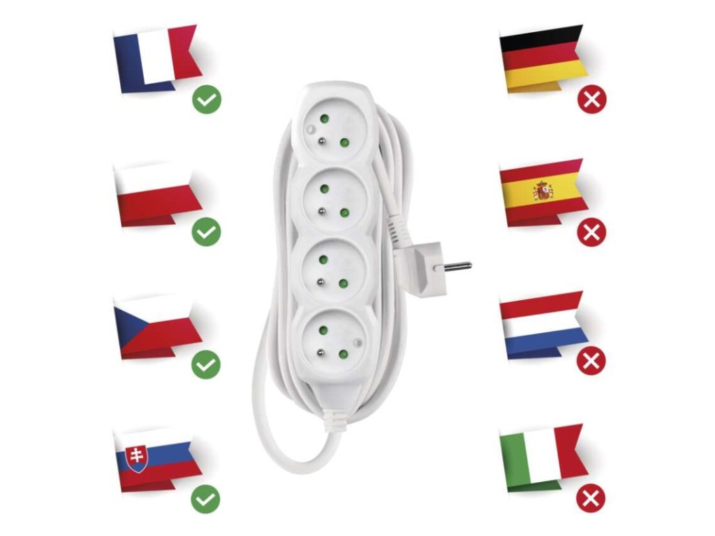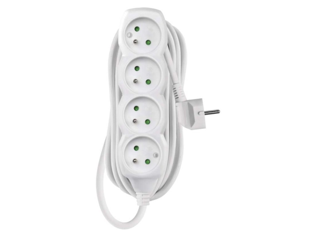 barva: bílá|délka: 5 m|dětské clonky: ano|krytí: IP20|materiál zásuvky a vidlice: plast|max. zátěž: 3 680 W|napětí: 250 V~|počet zásuvek: 4|prodejní obal: 1 ks, závěs|proud: 16 A max.|průřez vodiče: 1,5 mm²|typ izolace: PVC|USB výstup: ne|vodič: H05VV-F3G|vypínač: neDoplňkové parametry