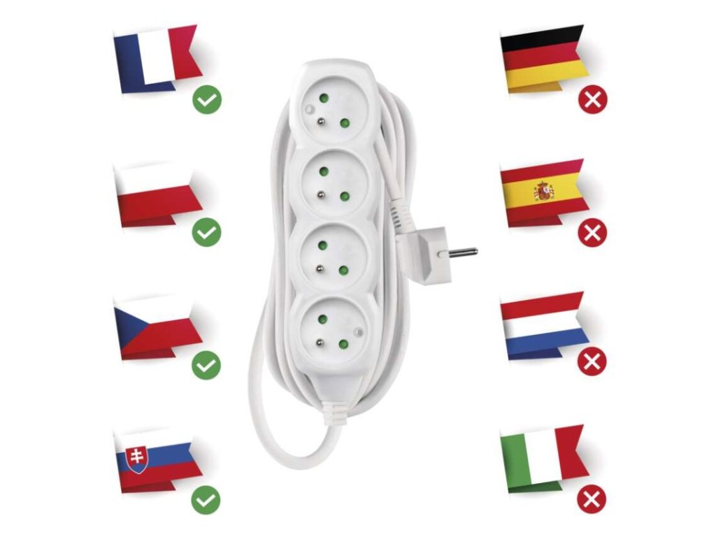 barva: bílá|délka: 5 m|dětské clonky: ano|krytí: IP20|materiál zásuvky a vidlice: plast|max. zátěž: 2 300 W|napětí: 250 V~|počet zásuvek: 4|prodejní obal: 1 ks, závěs|proud: 10 A max.|průřez vodiče: 1,0 mm²|typ izolace: PVC|USB výstup: ne|vodič: H05VV-F3G|vypínač: neDoplňkové parametry