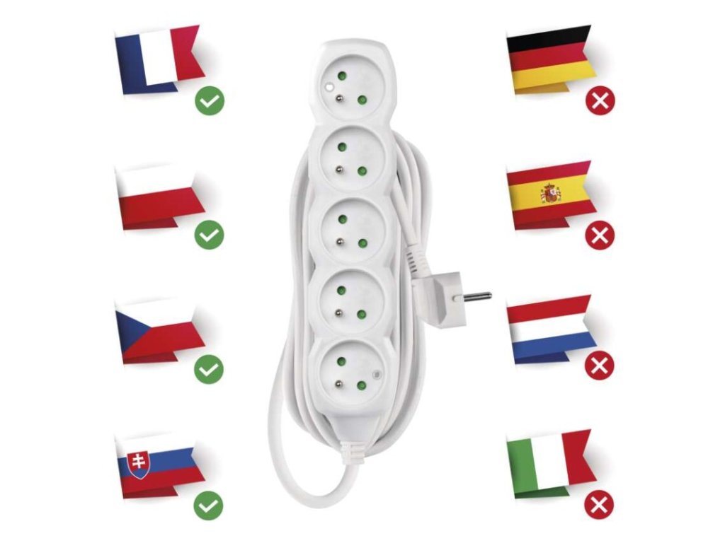 barva: bílá|délka: 7 m|dětské clonky: ano|krytí: IP20|materiál zásuvky a vidlice: plast|max. zátěž: 3 680 W|napětí: 250 V~|počet zásuvek: 5|prodejní obal: 1 ks, závěs|proud: 16 A max.|průřez vodiče: 1,5 mm²|typ izolace: PVC|USB výstup: ne|vodič: H05VV-F3G|vypínač: neDoplňkové parametry