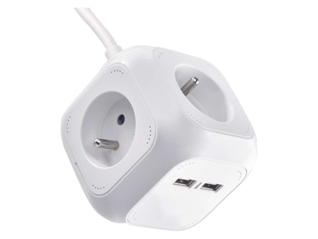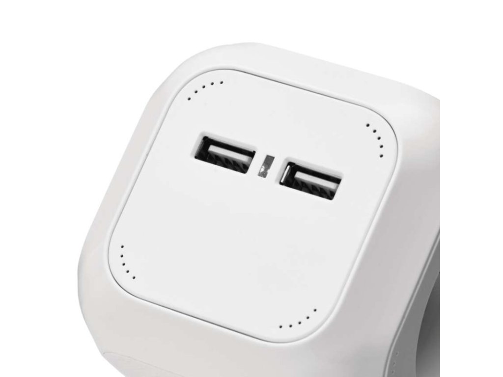 Prodlužovací kabel - kostka 1,9 m / 4 zásuvky / bílý / PVC / s USB / 1 mm2