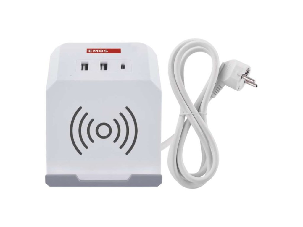 Prodlužovací kabel - kostka 2 m / 2 zásuvky / bílý / 2×USB-A + 1×USB-C+Qi / 1,5 mm2