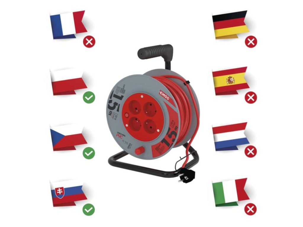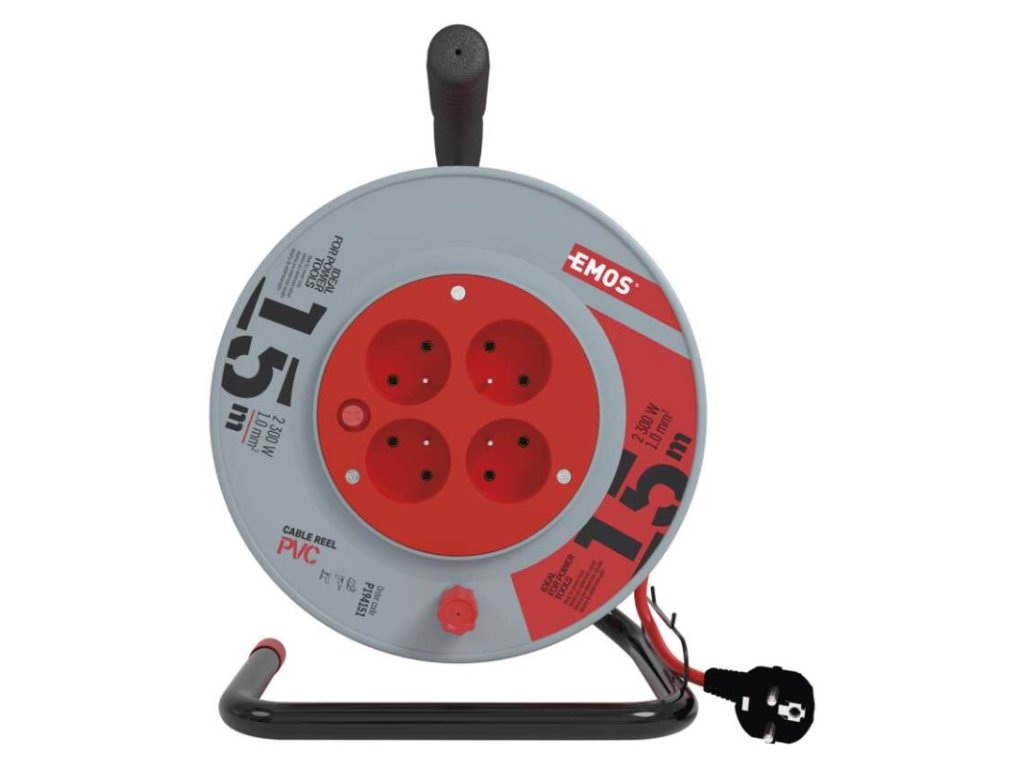Prodlužovací kabel na bubnu 15 m / 4 zásuvky / červený / PVC / 230 V / 1 mm2
