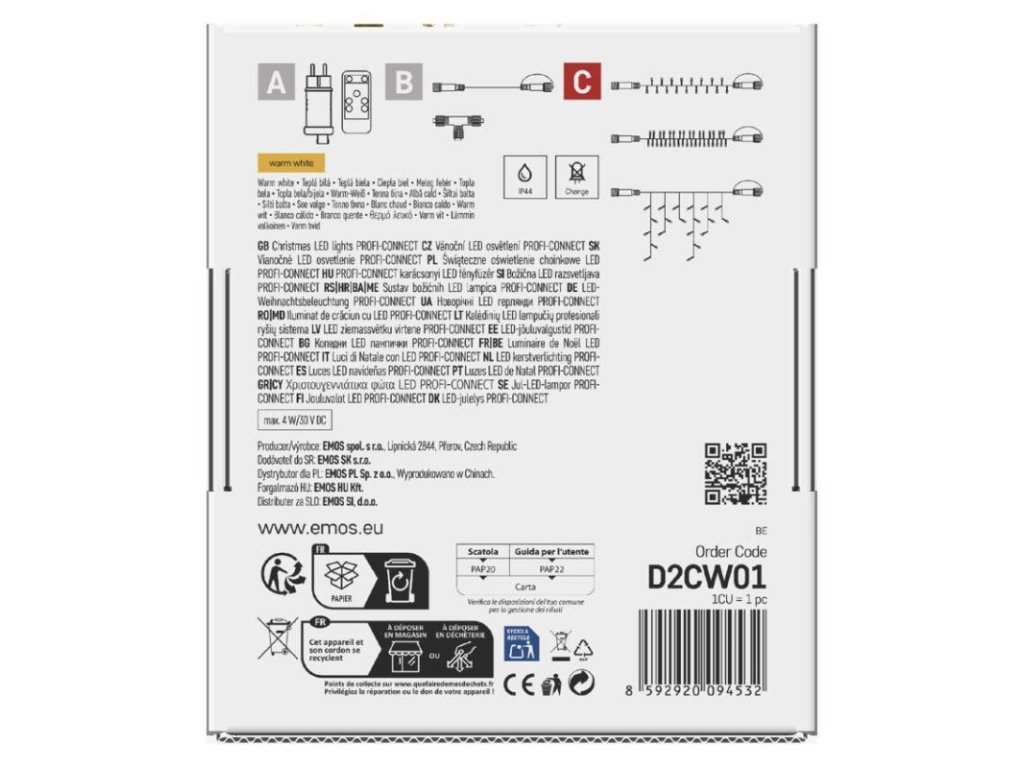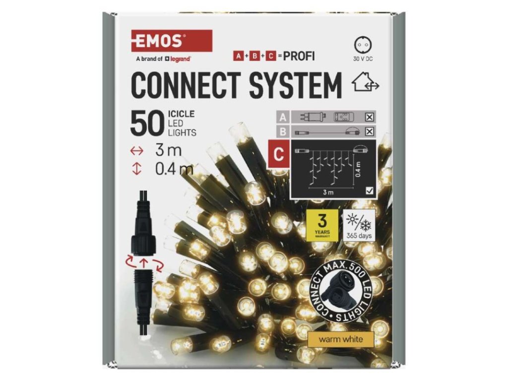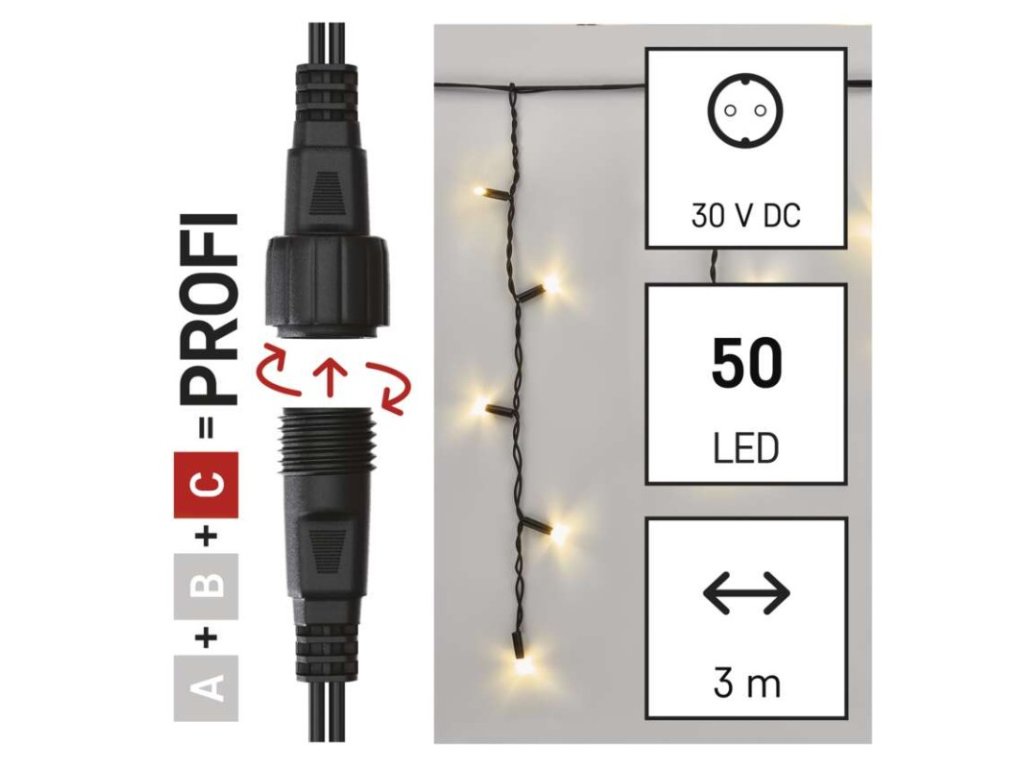 barva drátu: černá|barva světla: teplá bílá|časovač: neuvádí se|dálkový ovladač: ne|délka přívodu: 10 cm|funkce: svítí|krytí: IP44|LED mezera: 10 cm|materiál: guma|možnost propojení: ano|počet LED: 50|použití: venkovní i vnitřní|příkon: max. 4 W|prodejní obal: 1 ks, krabice|produkt: krápníky|pro výšku stromu: neuvádí se|rozměr: 3 × 0,4 m|tvar: klasický|typ napájení: síťový adaptér (není součástí balení)|velikost LED: 7 mm|vstupní napětí: 30 V DC|výstupní napětí: neuvádí se|záruční doba: 3 roky|životnost: 10 000 hodinDoplňkové parametry