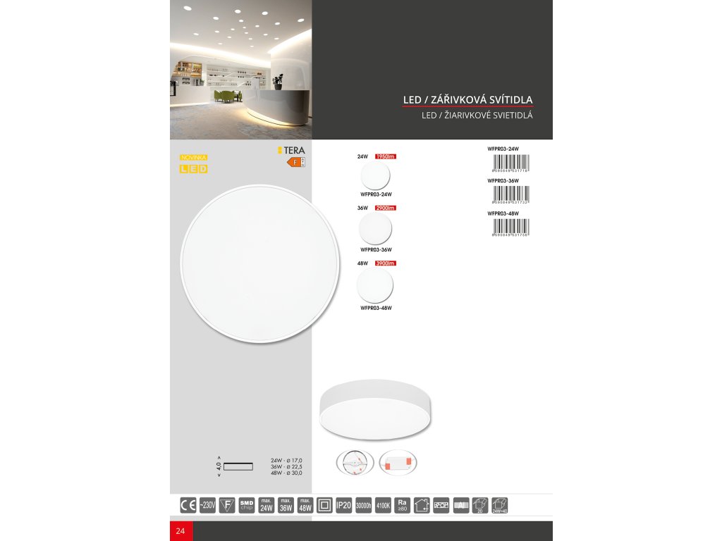 Stropní svítidlo TERA / TRIM zaujme především svým minimalistickým designem v poctivém hliníkovém těle, který podtrhává tenký rámeček. Využívá vysoce úspornou LED SMD technologii a je k dispozici v několika výkonnostních variantách s možností výběru hranaté nebo kulaté verze.Doplňkové parametry