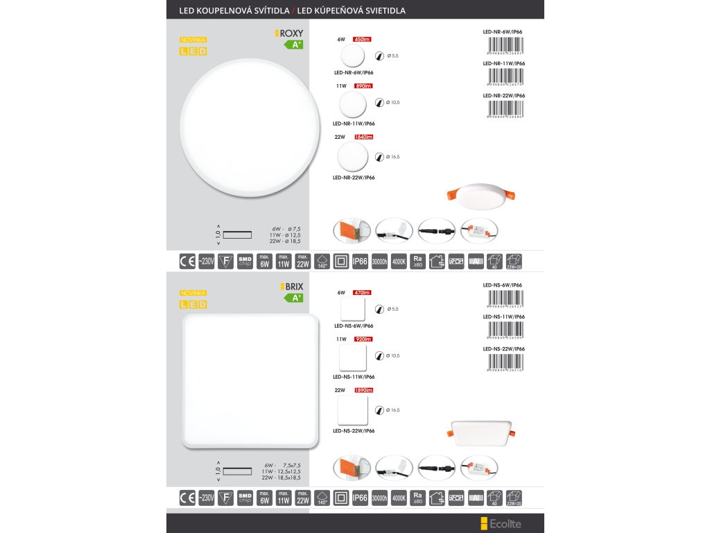 Precizně zpracovaná koupelnová LED svítidla série ROXY (kulatá) a BRIX (hranatá) zaujmou především unikátním bezrámečkovým zpracováním a krytím IP66 - chráněno proti intenzivně tryskající vodě. Využití tak naleznou například v koupelnách nebo v jiných prostorách s vyšším rizikem bezprostředního kontaktu s vodou. Součástí produktového balení je napájecí zdroj (driver) a pružinové úchyty pro montáž do SDK.Doplňkové parametry