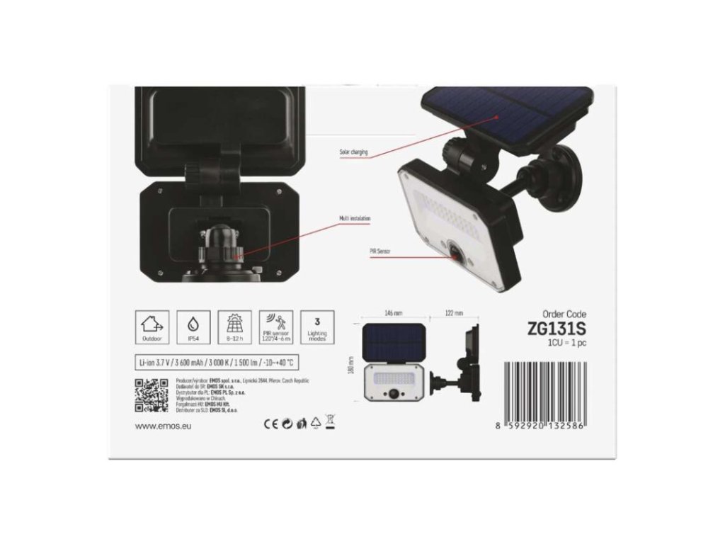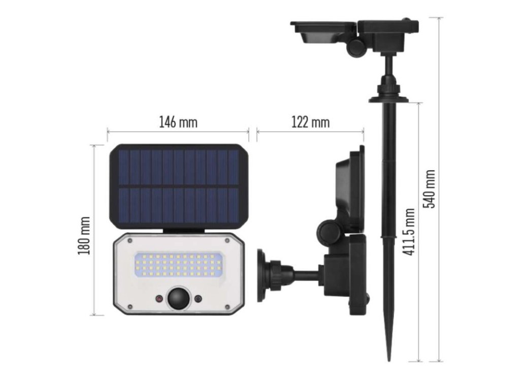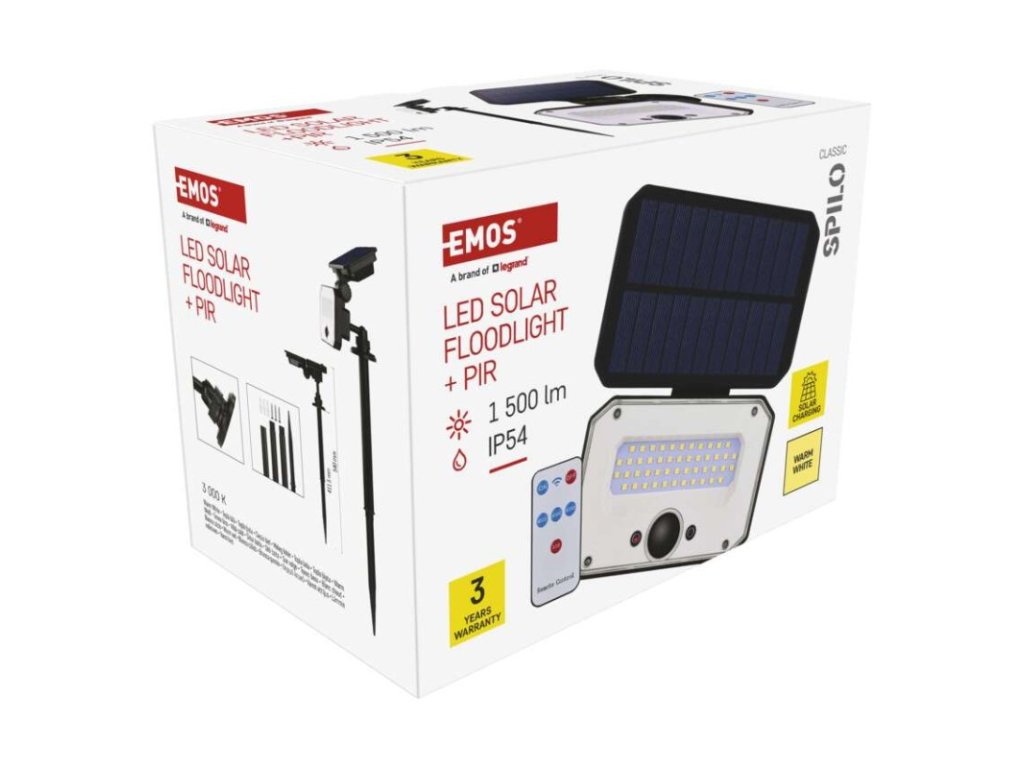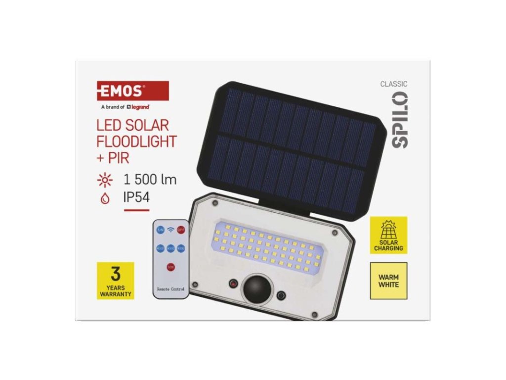 akumulátor: Li-Ion 3 600 mAh|barva: černá|barva světla: teplá bílá|délka přívodního kabelu: –|doba svícení na AKU: –|dosah PIR senzoru: 6 m|energetická třída použitého světelného zdroje: –|flicker-free: nebliká|frekvence: –|index podání barev (CRI): Ra > 80|kategorie: CLASSIC|krytí: IP54|materiál difuzoru: plast (PC)|materiál přívodního kabelu: –|materiál těla: plast (ABS+PC)|napájení: solární|napětí: 3,7 V|PIR senzor: ano|počet průchozích zásuvek: –|použití: povrchová montáž|příkon: –|prodejní obal: 1 ks, krabice|proud: –|řada: SPILO|rozměr: 180 × 146 × 122 mm|rozsah pracovní teploty: -10 °C až +40 °C|stmívání: –|stupeň ochrany proti mechanickým nárazům: –|světelná účinnost: –|světelný tok: 1 500 lm|teplota chromatičnosti: 3 000 K|typ přívodního kabelu: –|typ průchozích zásuvek: –|typ stmívání: –|účiník: –|úhel vyzařování: 110°|záruční doba: 3 roky|zdroj světla: LED|životnost: –|zkušební žárovka součástí balení: neDoplňkové parametry