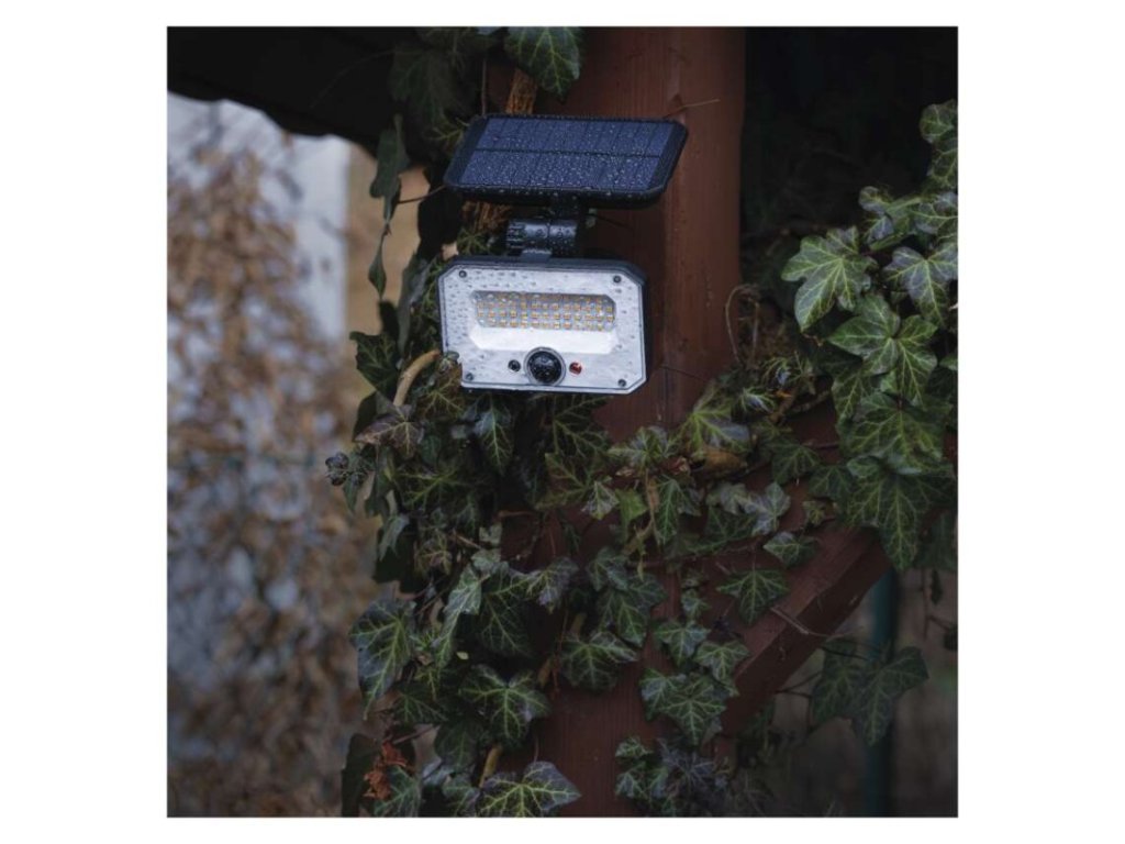 Solární LED reflektor SPILO s pohybovým čidlem, černý, teplá bílá