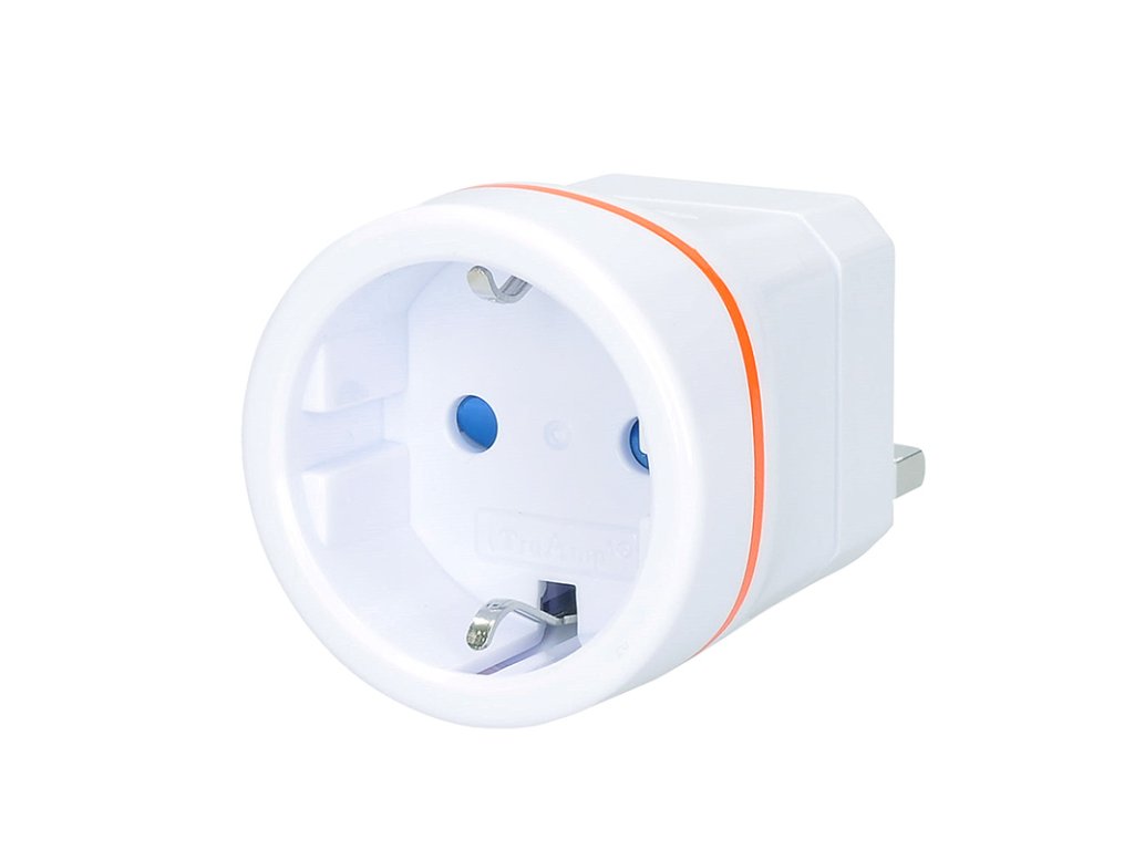 Adaptér umožňuje bezpečné použití evropských zařízení v zásuvkách Spojeného království a zemích s UK standardem. Připojí uzemněné i neuzemněné vidlice přívodních kabelů, bez problémů zapojíte vše od notebooků, telefonů až po fény.