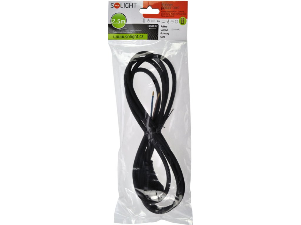 Solight flexo šňůra, 2x 1mm2, gumová, černá, 2,5m