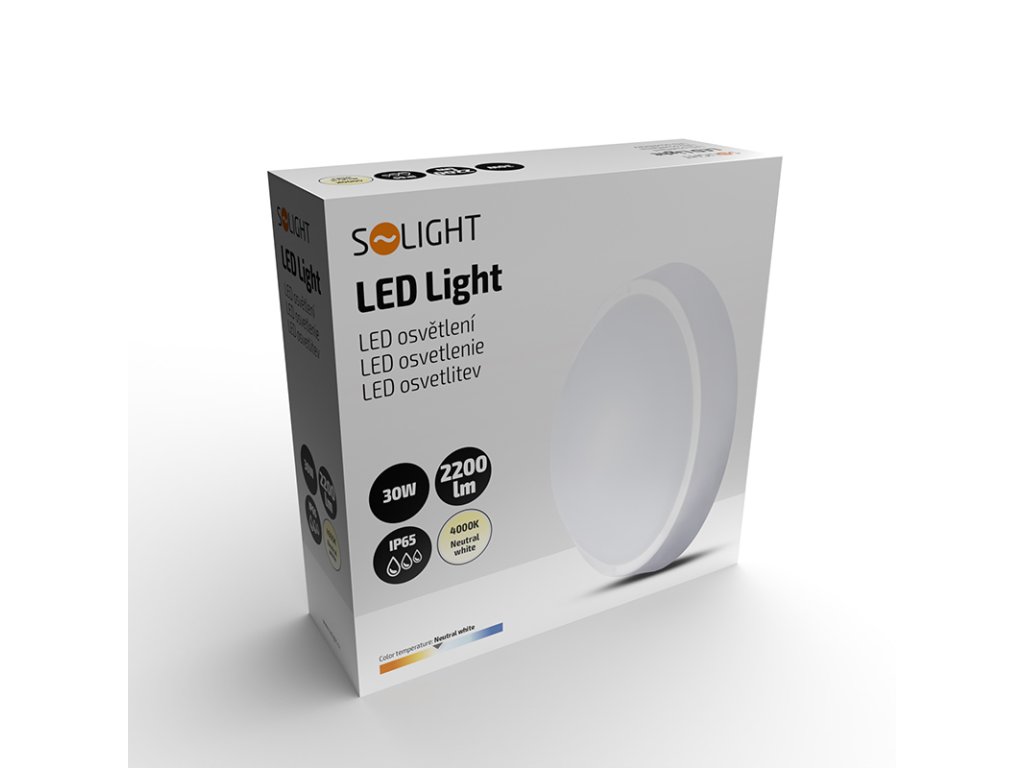 Výkonné LED nástěnné a stropní svítidlo s příkonem 30 W a světelným tokem 2200 lm poskytuje jasné, rovnoměrné světlo s teplotou 4000K. Je ideální pro větší prostory, jako jsou průchody, skladovací haly, chodby nebo venkovní přístřešky.