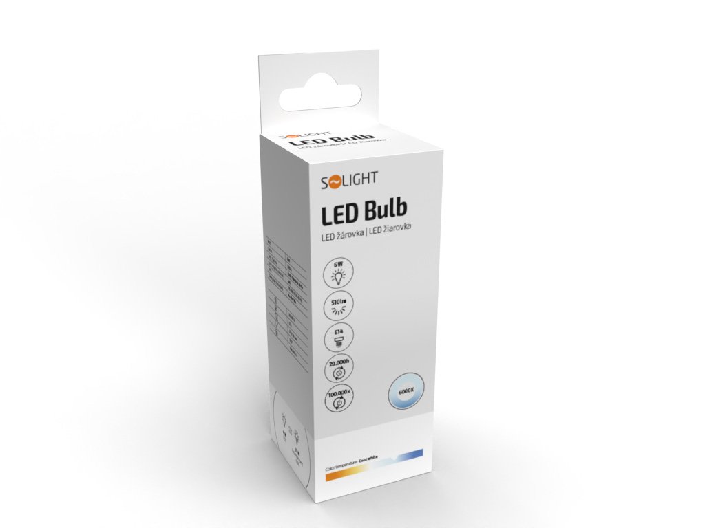 Solight LED žárovka, svíčka, 6W, E14, 6000K, 510lm