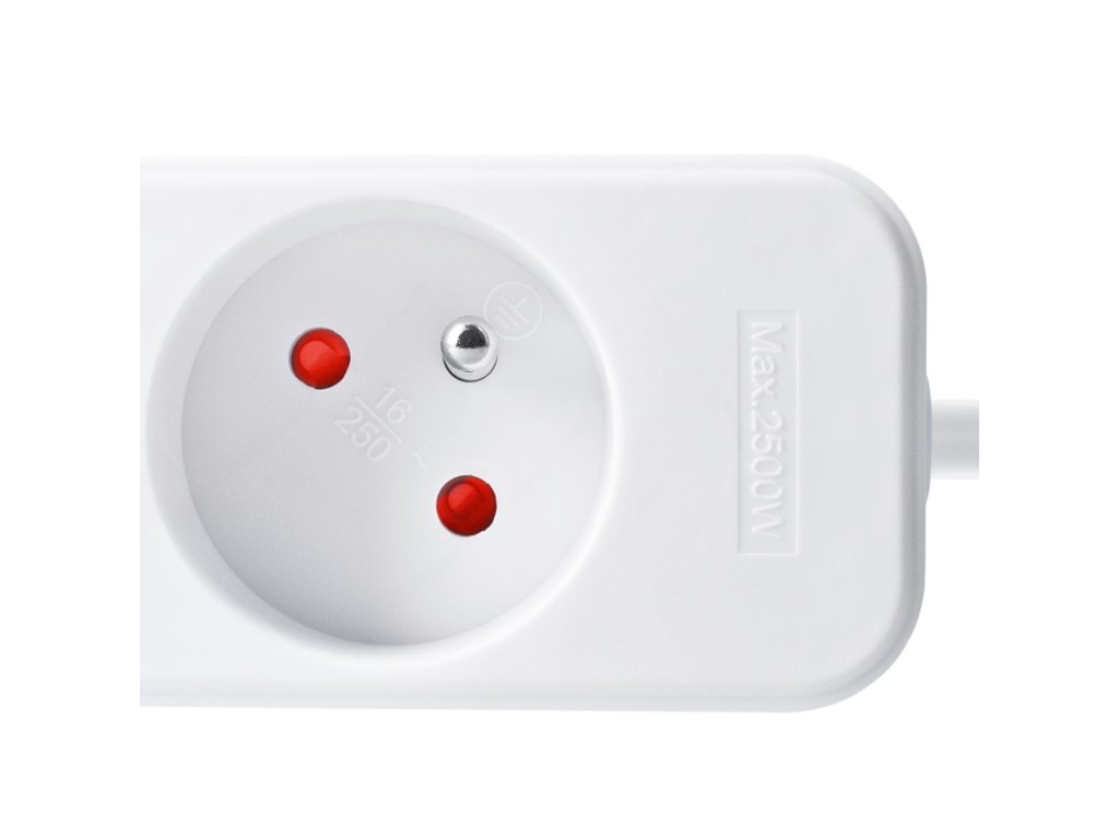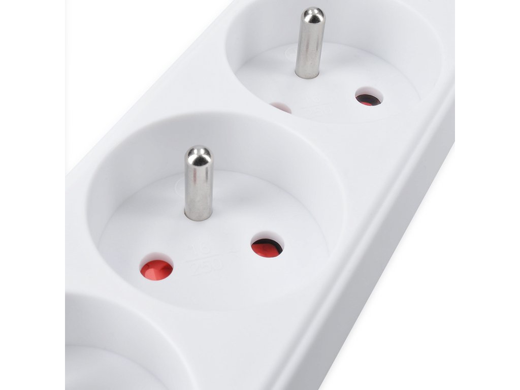 Praktický bílý prodlužovací kabel s délkou 1,5 metru a třemi zásuvkami umožní přivést elektrickou energii tam, kde není k dispozici pevná zásuvka. Ideální pro domácí i kancelářské využití.