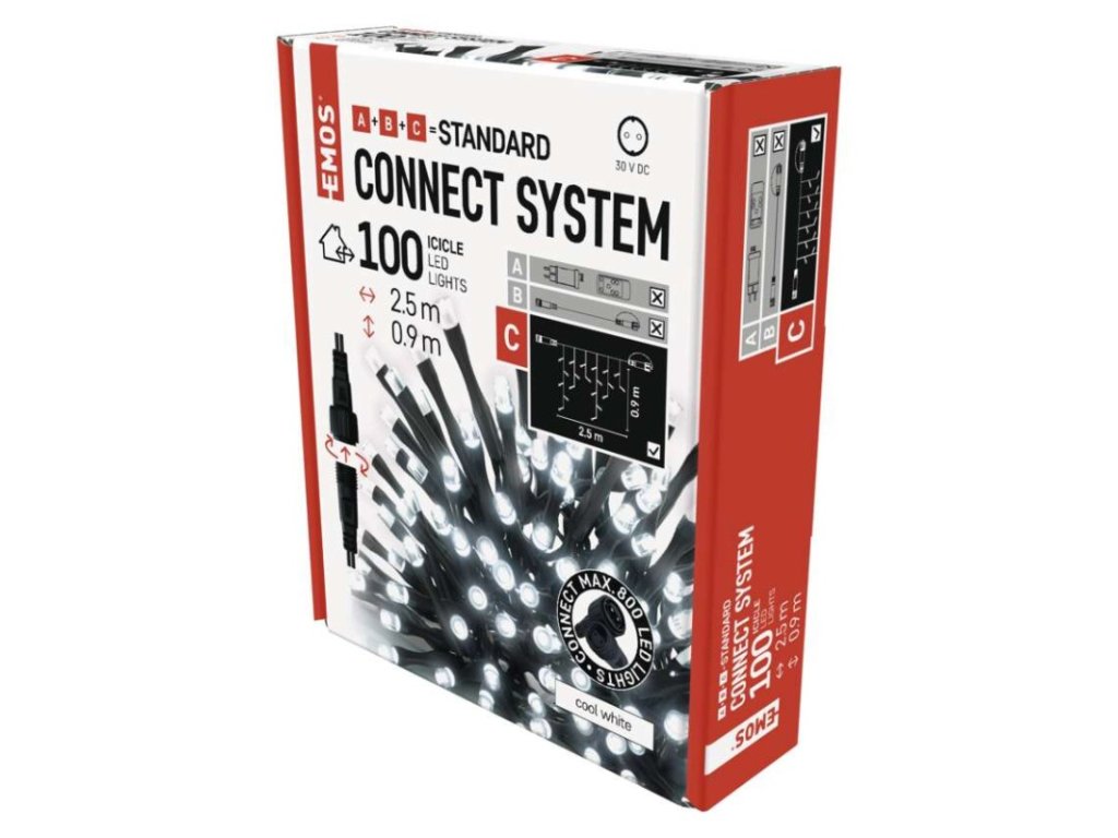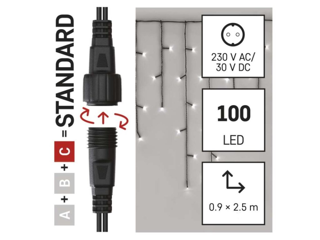 Standard LED spojovací vánoční řetěz – rampouchy, 2,5 m, venkovní, studená bílá