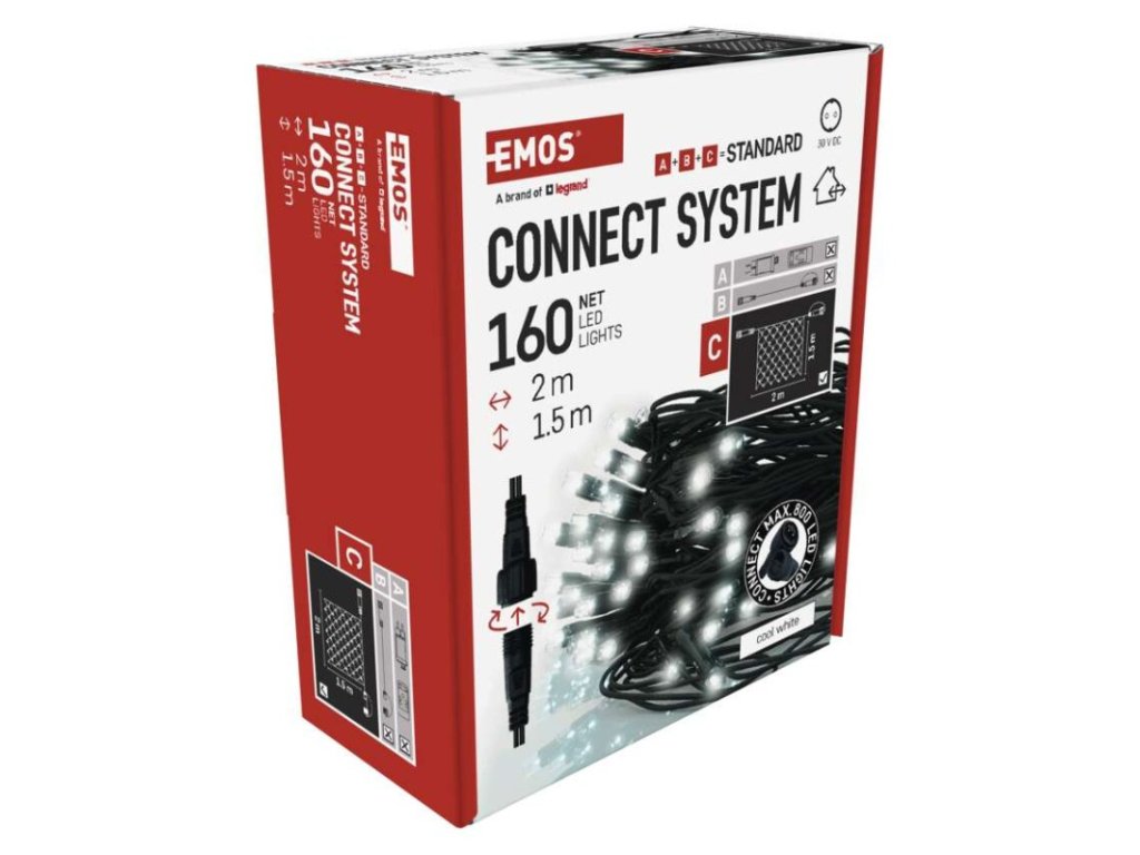 Standard LED spojovací vánoční řetěz – síť, 1,5x2 m, venkovní, studená bílá