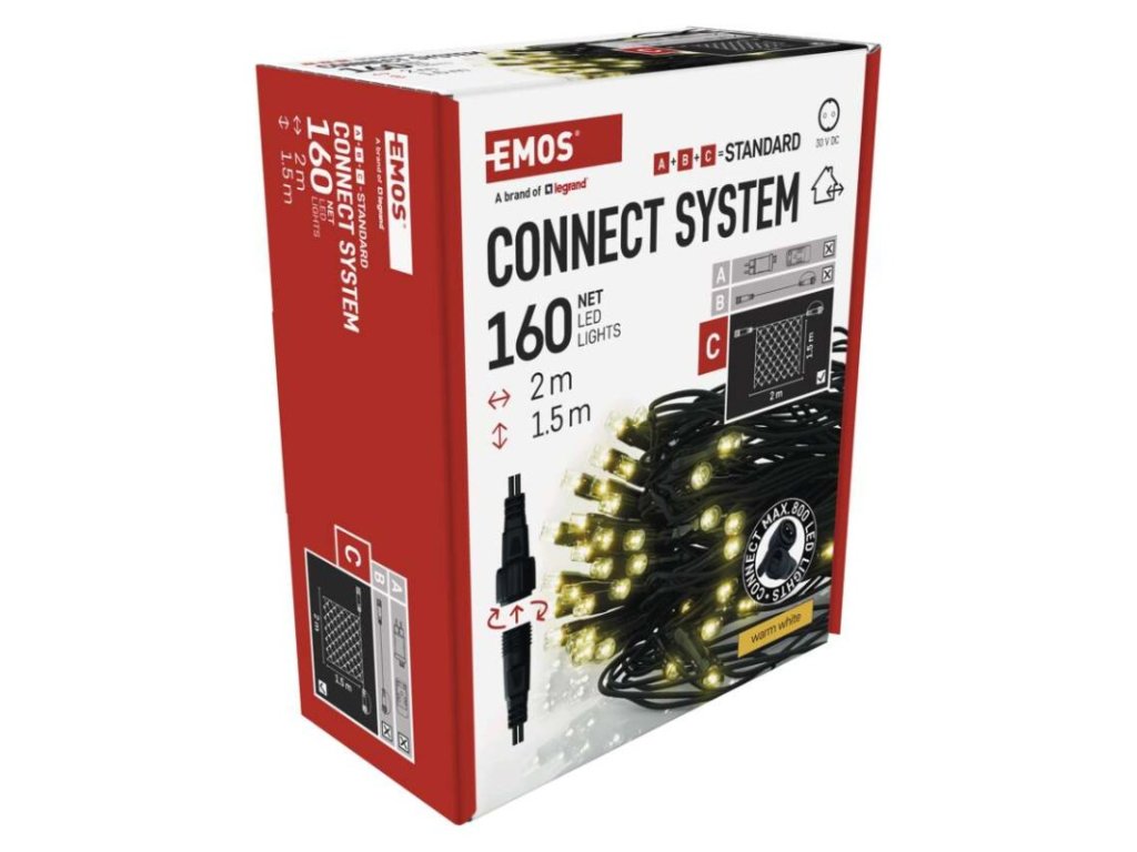 Standard LED spojovací vánoční řetěz – síť, 1,5x2 m, venkovní, teplá bílá