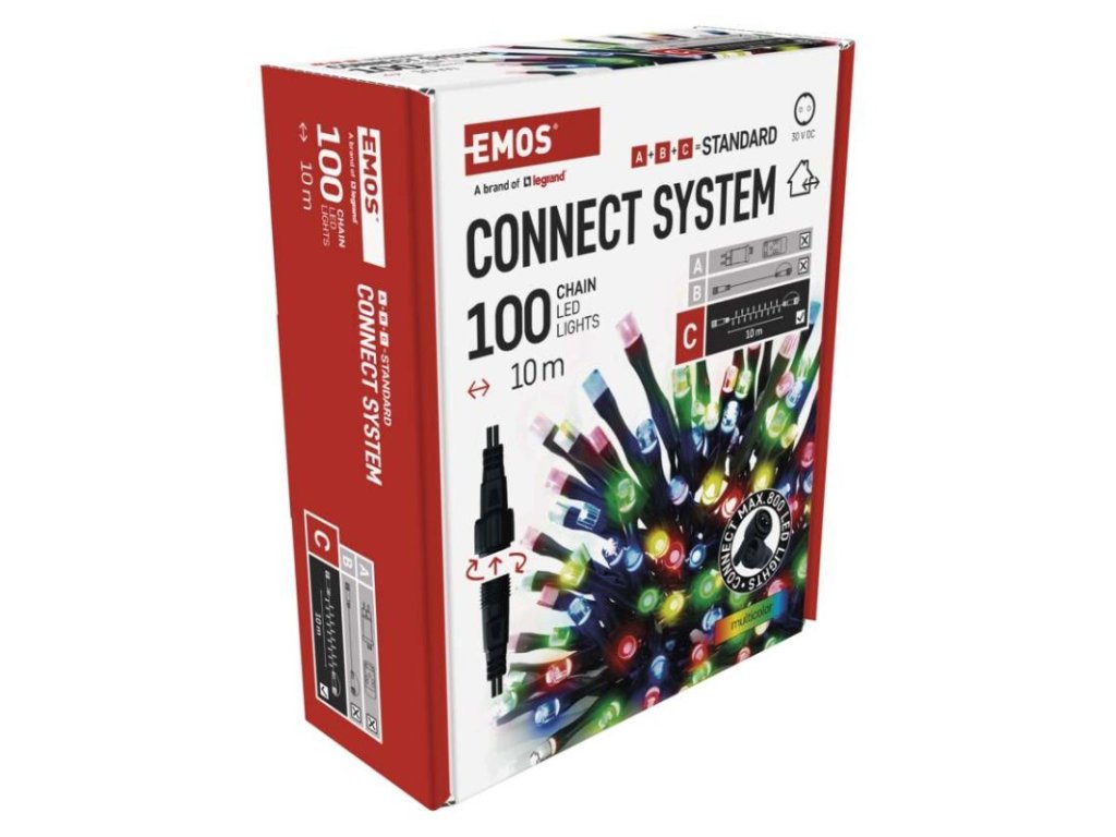 Standard LED spojovací vánoční řetěz, 10 m, venkovní i vnitřní, multicolor