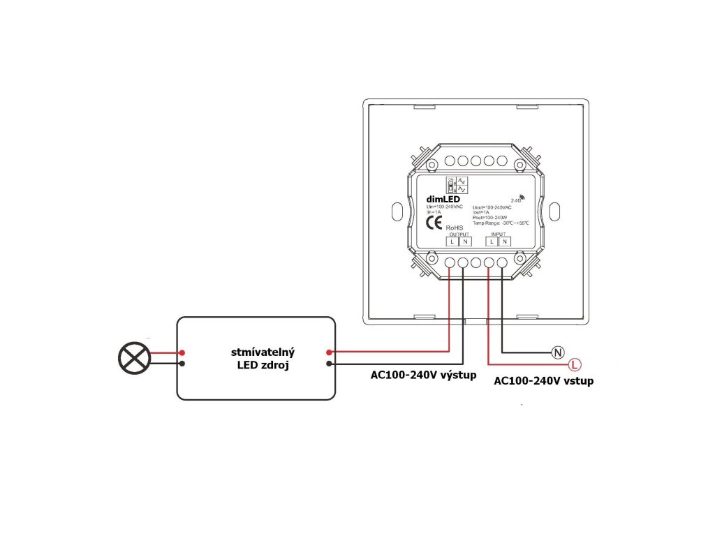 Nástěnný triakový LED stmívač dimLED KNT240W kombinuje vlastnosti přijímače a ovladače. S jedním ovladačem KNT240W lze ovládat 1 okruh, který se může skládat i z několika přijímačů na více místech. Zároveň lze přímo na výstup stmívače KNT240W připojit LED osvětlení a ovladač KNT240W použít i jako přijímač. Ovladačem KNT240W lze tedy ovládat i jiné řady přijímačů dimLED a zároveň k němu lze spárovat jiné modely ovladačů dimLED. Vlastnosti a výhody systému dimLED: Stmívání je stabilní a spolehlivé, dosah ovladače ≤ 30M. Stmívání v rozmezí 0-100%, stmívání měkké, bez blikání. Při zapnutí dojde k pozvolnému rozsvícení, při vypnutí dojde k pozvolnému setmění. Ovládání probíhá na kolečku ovladače. Otáčení kolečka dochází k nastavování intenzity světla. Zmáčknutím kolečka dojde k vypnutí/zapnutí osvětlení. Přidržením kolečka taktéž plynule regulujete intenzitu. Stmívač je elektronický 0-100%, připojený stmívatelné světelné zdroje většinou nejsou konstruovány 0-100%, takže při nastavení stmívače na 0% či velmi málo, se může stát, že po vypnutí stmívače v této hodnotě a opětovném zapnutí nedojde k vybuzení zdroje a je nutné na stmívači přidat hodnotu jasu pro rozsvícení. Řešení je najít na světle polohu, kam na minimum stmívat před vypnutím. Pozor! Na tento stmívač nelze připojit stmívatelné zdroje řady DIM20 a DIM67 Specifikace ovladače: Barva ovladače Černá Přenosová frekvence 2,4GHz Pracovní frekvence 2kHz Vstupní napětí 100-240VAC Proudové zatížení LED zdroje - 200W Vláknová žárovka - 400W Dosah 30m Počet zón 1 samostatná Počet přijímačů Lze spárovat neomezeně přijímačů Počet ovladačů Až 10 externích ovladačů Způsob stmívání Ořezávání půlvlny na vzestupné nebo sestupné hraně dle nastavení Rozměry 86 x 86 x 48,5 mm (lze namontovat do standartní EU krabice) Paměť posledního nastavení po odpojení napájení: ANO Stupeň krytí: IP20Doplňkové parametry