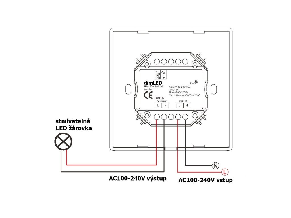 Nástěnný triakový LED stmívač dimLED KNT240W kombinuje vlastnosti přijímače a ovladače. S jedním ovladačem KNT240W lze ovládat 1 okruh, který se může skládat i z několika přijímačů na více místech. Zároveň lze přímo na výstup stmívače KNT240W připojit LED osvětlení a ovladač KNT240W použít i jako přijímač. Ovladačem KNT240W lze tedy ovládat i jiné řady přijímačů dimLED a zároveň k němu lze spárovat jiné modely ovladačů dimLED. Vlastnosti a výhody systému dimLED: Stmívání je stabilní a spolehlivé, dosah ovladače ≤ 30M. Stmívání v rozmezí 0-100%, stmívání měkké, bez blikání. Při zapnutí dojde k pozvolnému rozsvícení, při vypnutí dojde k pozvolnému setmění. Ovládání probíhá na kolečku ovladače. Otáčení kolečka dochází k nastavování intenzity světla. Zmáčknutím kolečka dojde k vypnutí/zapnutí osvětlení. Přidržením kolečka taktéž plynule regulujete intenzitu. Stmívač je elektronický 0-100%, připojený stmívatelné světelné zdroje většinou nejsou konstruovány 0-100%, takže při nastavení stmívače na 0% či velmi málo, se může stát, že po vypnutí stmívače v této hodnotě a opětovném zapnutí nedojde k vybuzení zdroje a je nutné na stmívači přidat hodnotu jasu pro rozsvícení. Řešení je najít na světle polohu, kam na minimum stmívat před vypnutím. Pozor! Na tento stmívač nelze připojit stmívatelné zdroje řady DIM20 a DIM67 Specifikace ovladače: Barva ovladače Bílá Přenosová frekvence 2,4GHz Pracovní frekvence 2kHz Vstupní napětí 100-240VAC Proudové zatížení LED zdroje - 200W Vláknová žárovka - 400W Dosah 30m Počet zón 1 samostatná Počet přijímačů Lze spárovat neomezeně přijímačů Počet ovladačů Až 10 externích ovladačů Způsob stmívání Ořezávání půlvlny na vzestupné nebo sestupné hraně dle nastavení Rozměry 86 x 86 x 48,5 mm (lze namontovat do standartní EU krabice) Paměť posledního nastavení po odpojení napájení: ANO Stupeň krytí: IP20Doplňkové parametry