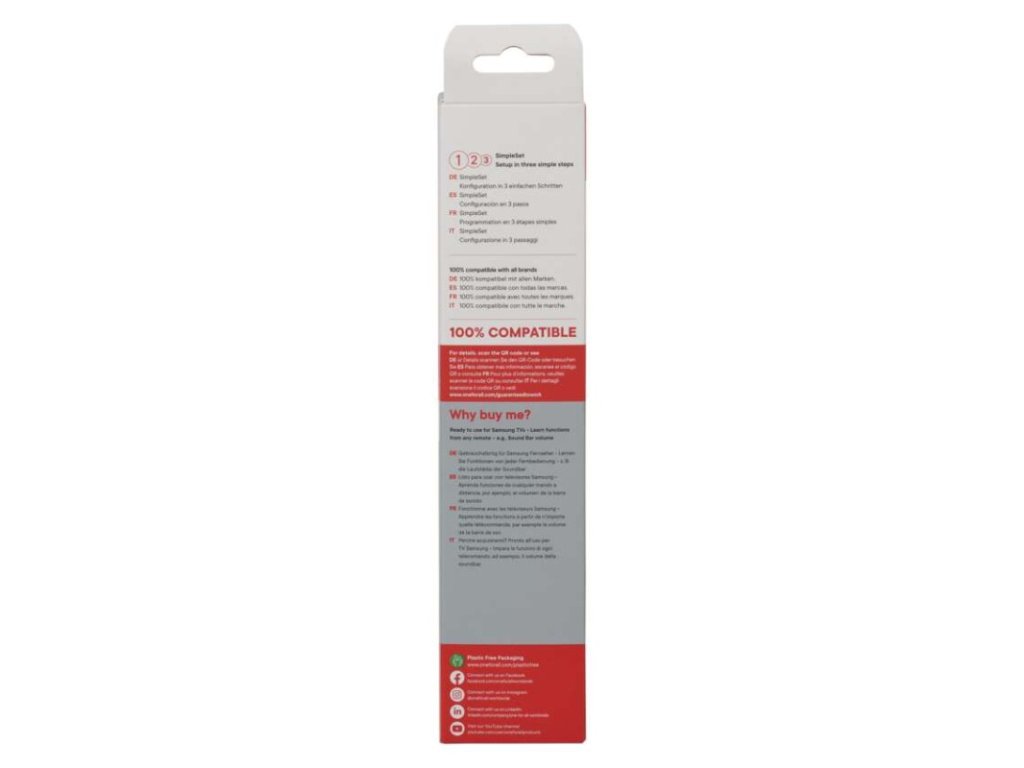 baterie součástí ovladače: ne|dosah: 15 m|funkce combi control: ne|funkce makro: ne|funkce učení: ano|garance podpory ovládání všech značek: ano|hmotnost: 107 g|modelová řada: Essence|napájení: 2× AA|nastavení a aktualizace přes www.simpleset.com: ne|paměť kódů po vyjmutí baterií: ano|počet možných ovládaných zařízení: 1|podsvícení kláves: ne|předprogramované kódy: ano|přímá volba zařízení: ne|přímé nastavení kódu: ano|prodejní obal: 1 ks, papírová krabička|rozměr: 15 × 44 × 225 mm|rychlý přístup k oblíbené aplikaci: ne|servisní aktualizace: ano|simple set nastavení: ano|určeno pro: TV|vyhledání kódu: manuální|zámek hlasitosti: ano|změna nastavení ovládacího tlačítka zařízení: neDoplňkové parametry